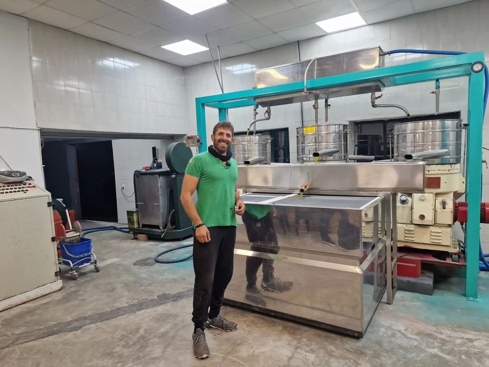 Στον προαύλιο χώρο τρακτέρ και μικροί γερανοί πηγαινοέρχονται ασταμάτητα μεταφέροντας τους σάκους με τον καρπό στο χώρο υποδοχής . Αφού πλένονται οι ελιές συνθλίβονται στο επόμενο στάδιο και η αλυσίδα των μηχανημάτων καταλήγει σε μεγάλους σωλήνες από τους οποίους τρέχει ο «πράσινος χρυσός», ο πρωταγωνιστής της μεσογειακής διατροφής.