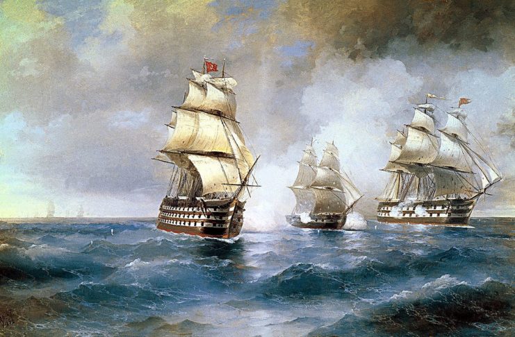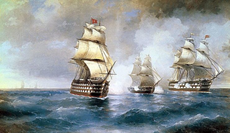Η προστατευτική ασπίδα που υψώνει η κραταιά αυτοκρατορία επάνω από το Ελληνικό ναυτεμπόριο, με την συνθήκη του Κιουτσούκ Καϊναρτζή (1774), βοηθά τον αγώνα του πολύπαθου Γένους για ελευθερία και ανεξαρτησία, παίζοντας καθοριστικό ρόλο στη νικηφόρα έκβαση της επανάστασης του 1821. Wikimedia Commons