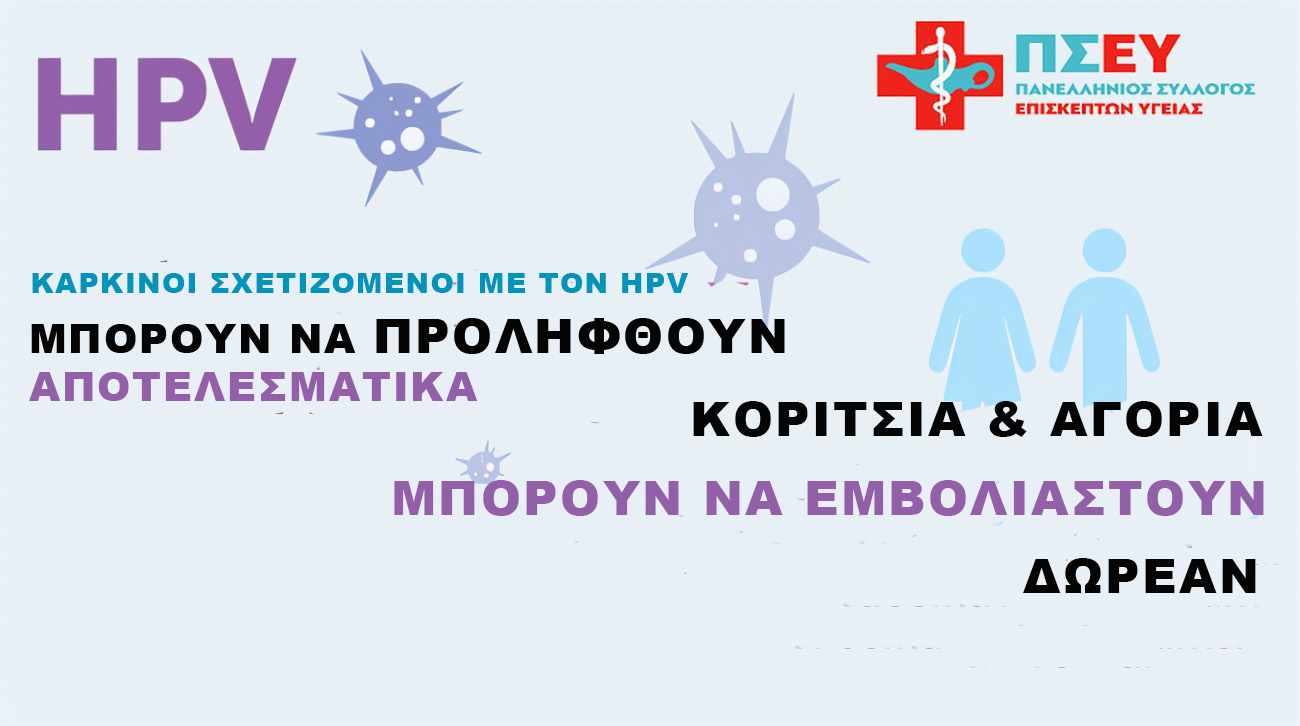 Ο Πανελλήνιος Σϋλλογος Επισκεπτών Υγείας ΠΣΕΥ/ΝΠΔΔ, τονίζει η κα Μαρία Σακουφάκη, Πρόεδρος του ΠΣΕΥ/ΝΠΔΔ, υποστηρίζει αυτή την πρωτοβουλία και υπογραμμίζει το γεγονός ότι, όταν πρόκειται για τον εξαιρετικά αποτελεσματικό και ασφαλή εμβολιασμό κατά του HPV, ο έγκαιρος εμβολιασμός σε αγόρια και κοριτσια απο την ηλικία των 9 ετων παίζει ιδιαίτερα σημαντικό ρόλο στην προστασία από τη μόλυνση με τύπους HPV υψηλού κινδύνου που μπορούν να προκαλέσουν καρκίνο.