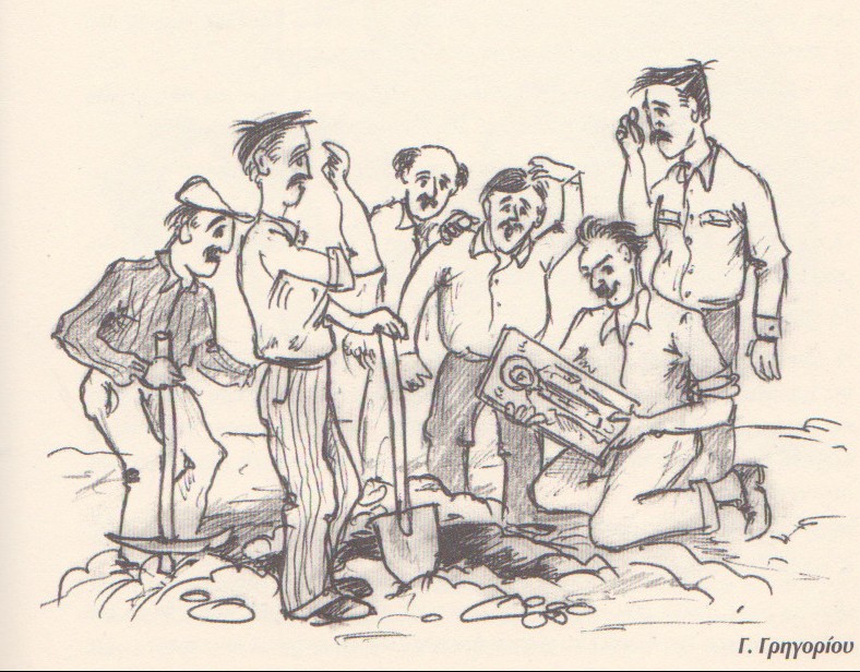 Ορίσανε λοιπό πως το Σάββατοθα πααίνανε για το ξέθαμα. Μαζεύτηκε κόσμος και κοσμάκης. ʼΑντρες με μπίγκους και με φτιάρια και μαζί και τα μαντήλια στο χέρι, έτοιμα να σκουπίσουνε τα δάκρυα τση συγκίνησης.