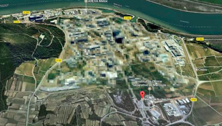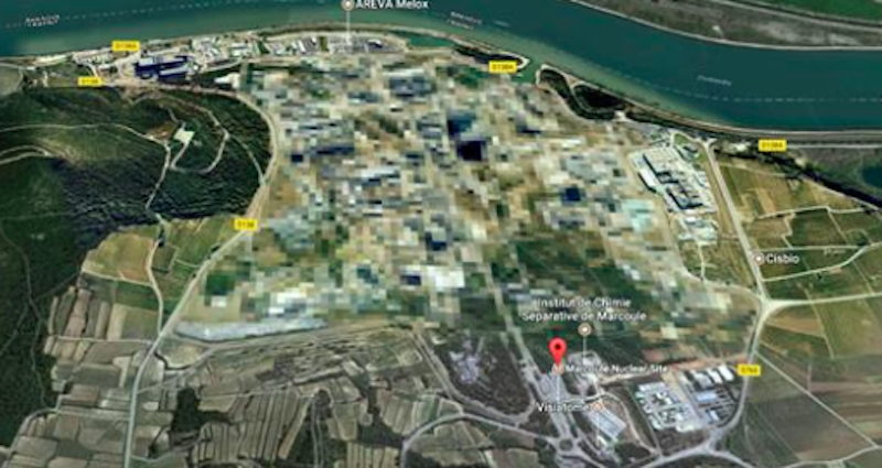 Είναι προφανώς αυτό το «πυρηνικό» που έχει στον τίτλο του που κάνει την Google να το θολώνει, παρουσιάζοντάς μας καθαρότατα τη γύρω περιοχή. Παρά το γεγονός ότι -όπως μας λένε οι Γάλλοι- το Marcoule είναι ανενεργό από το 2009, συνεχίζουν να το περιφρουρούν μέρα-νύχτα και να πιξελιάζουν την εικόνα του από αέρος. Σαν να μπαίνουν σε μεγάλο κόπο για κάτι που δεν δουλεύει πια.