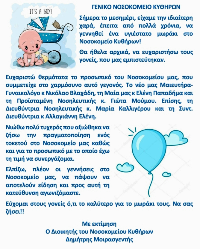 - Ένα υγιέστατο μωράκι γεννήθηκε στο Νοσοκομείο Κυθήρων
