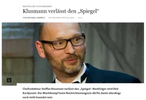 Τον Mάιο του 2023 αποπέμφθηκε ο αρχισυντάκτης του Spiegel Στέφεν Κλούσμαν. Στο ελληνικό Twitter αλλά και μεταξύ συμπολιτευόμενων και αντιπολιτευόμενων εφημερίδων ξάσπασε πόλεμος για το αν παύθηκε για την υπόθεση της Μικρής Μαρίας. Ανάμεσα σε άλλους λόγους η γερμανική εφημερίδα Frankfurter Allgemeine Zeitung (FAZ) γράφει ότι ο Κλούσμαν θεωρήθηκε υπεύθυνος για την «αποτυχία με την ιστορία του κοριτσιού από τη Συρία, που φέρεται να πέθανε στα ελληνοτουρκικά σύνορα, η οποία κατά πάσα πιθανότητα δεν υπήρχε καν». Αναφέρει ακόμη το δημοσίευμα ότι το ζήτημα πράγματι διερευνήθηκε λεπτομερώς από το Spiegel το οποίο δημοσίευσε τα αποτελέσματα της έρευνάς στο τέλος του 2022 (σ.σ.: όταν και επέμεινε στο «κατέβασμα» των ρεπορτάζ από την ιστοσελίδα του). Ωστόσο, εκτιμά η FAZ, αυτό δεν ήταν αρκετό, «καθώς οι ψευδείς ειδήσεις θα μπορούσαν να προκαλέσουν μια διεθνή κρίση».