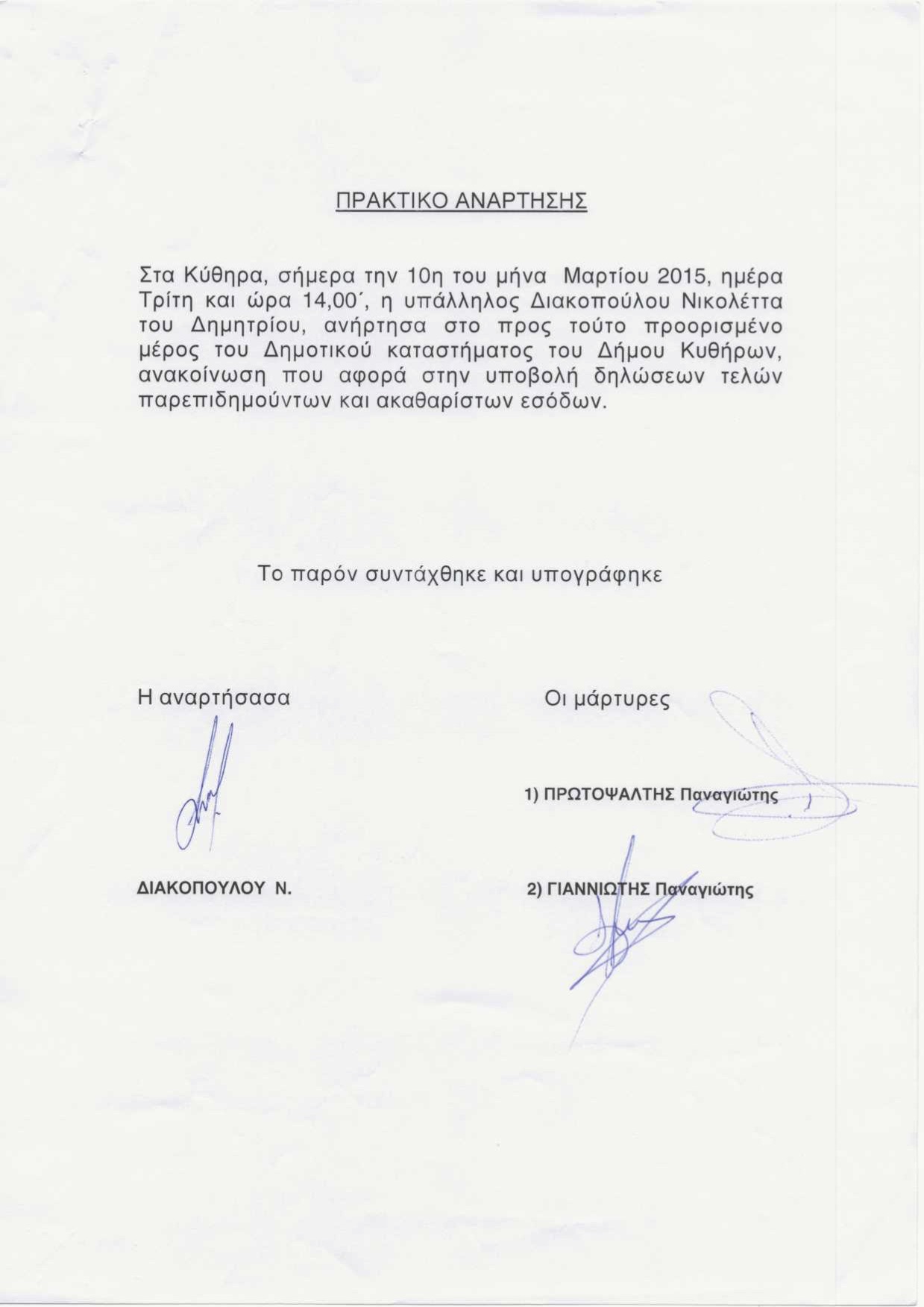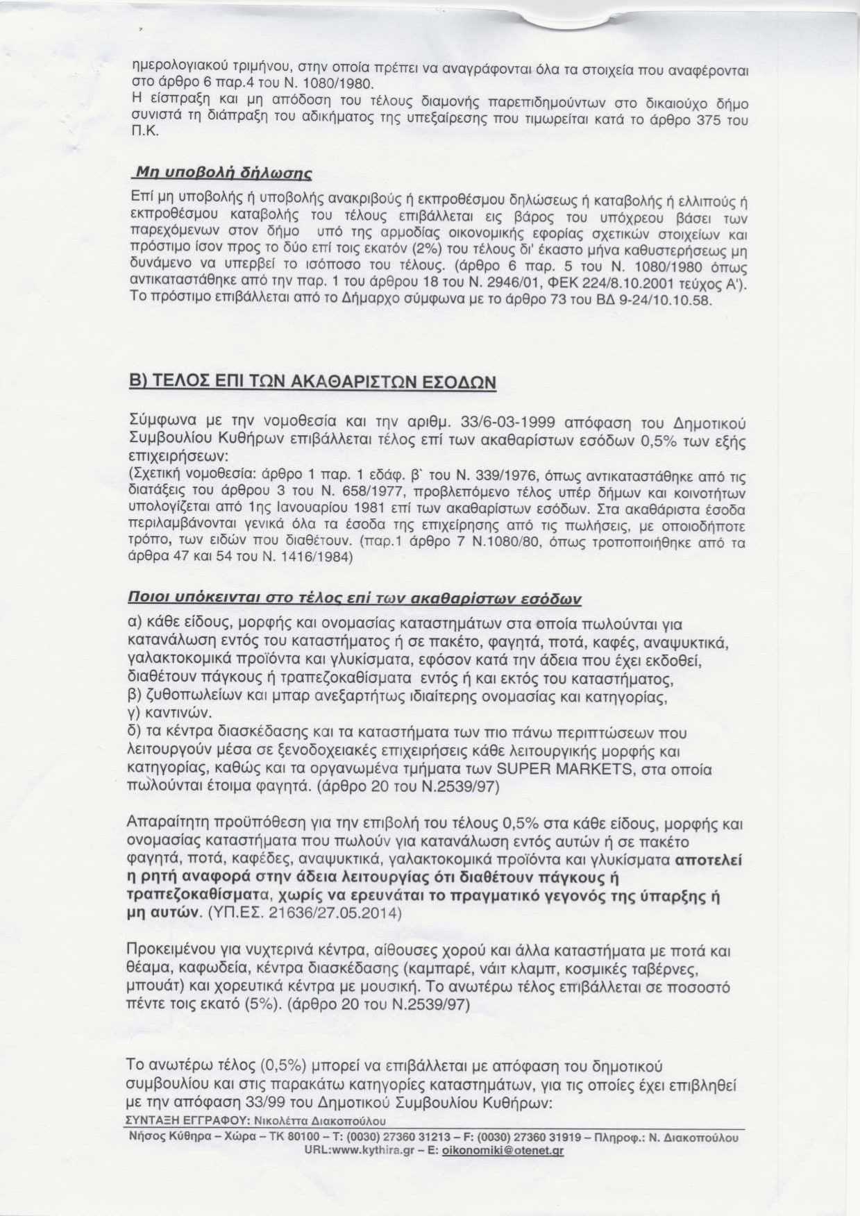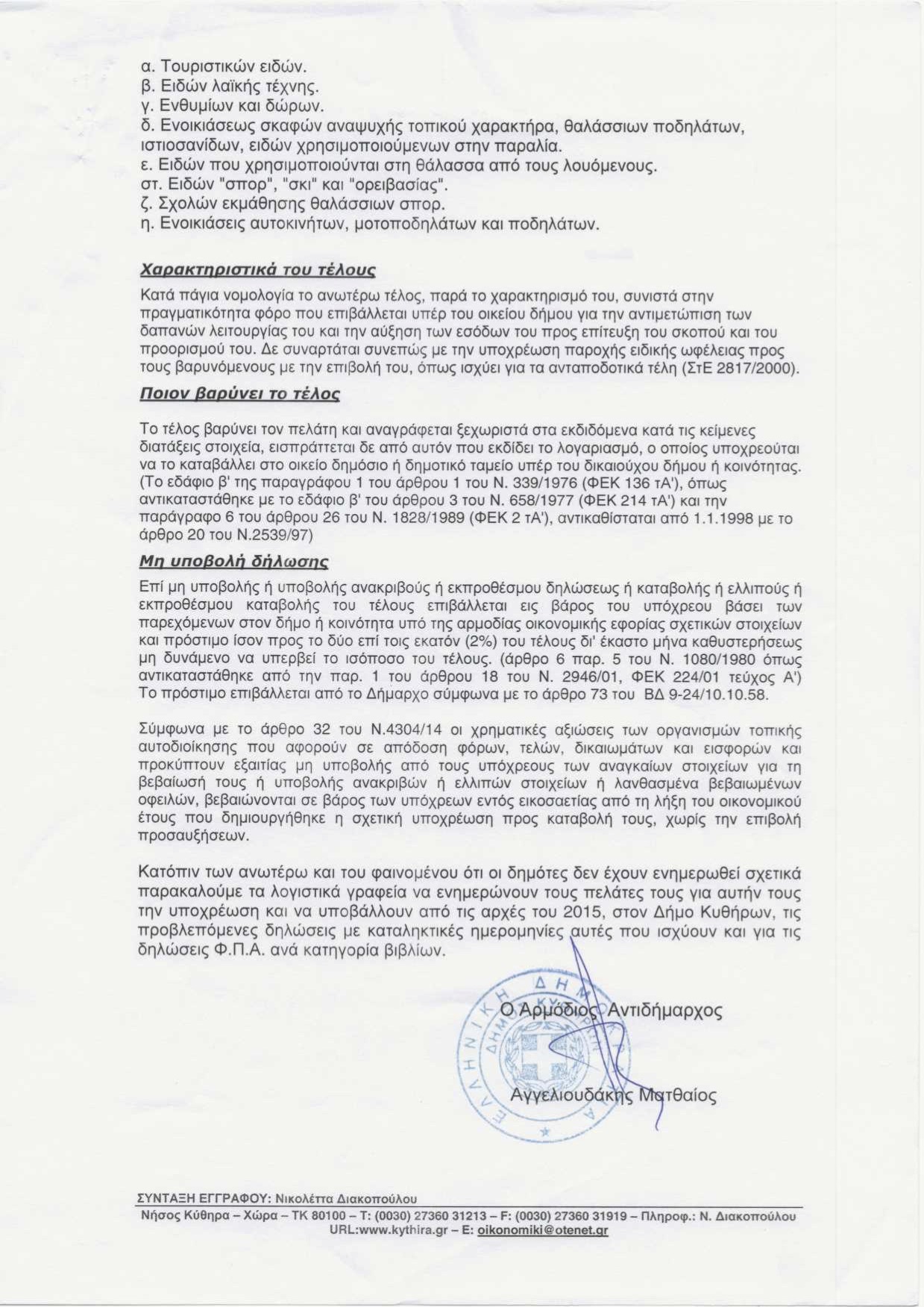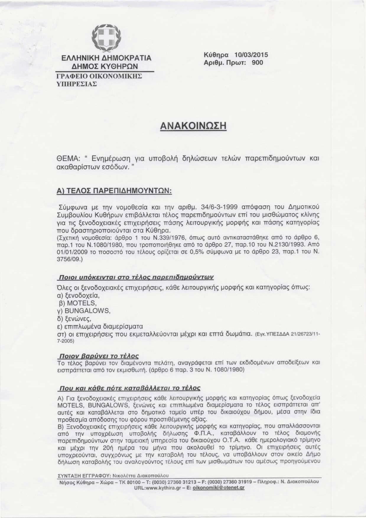 Ενημέρωση για υποβολή δηλώσεων τελών παρεπιδημούντων και ακαθάριστων εσόδων