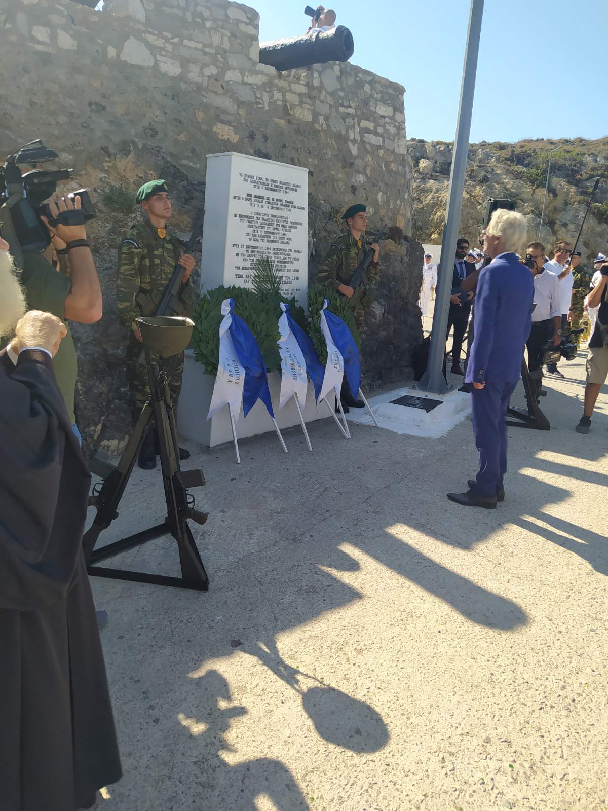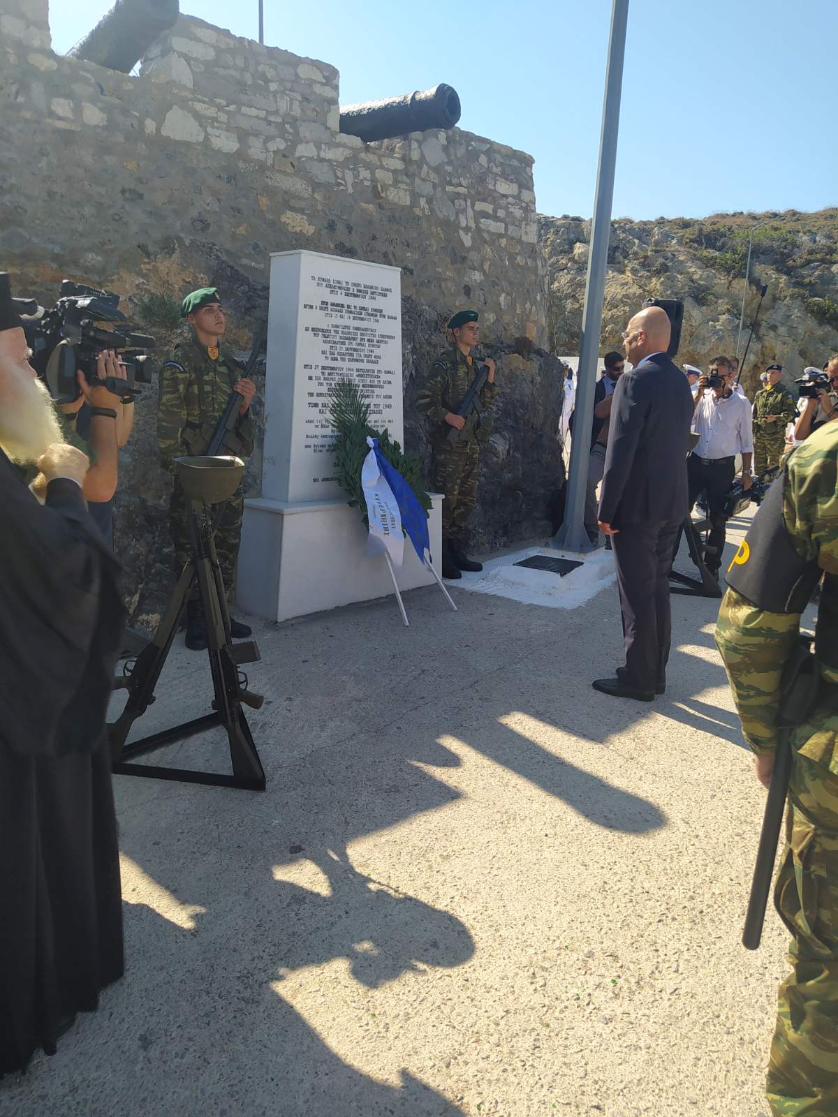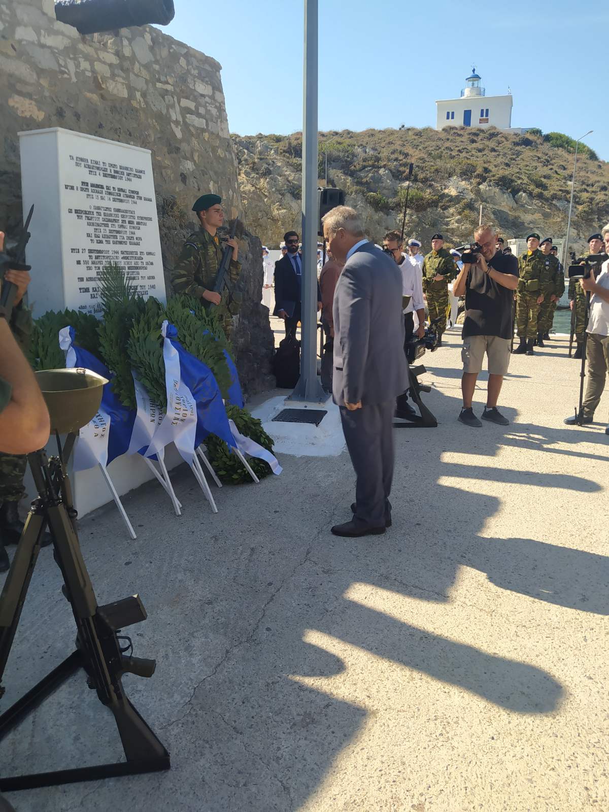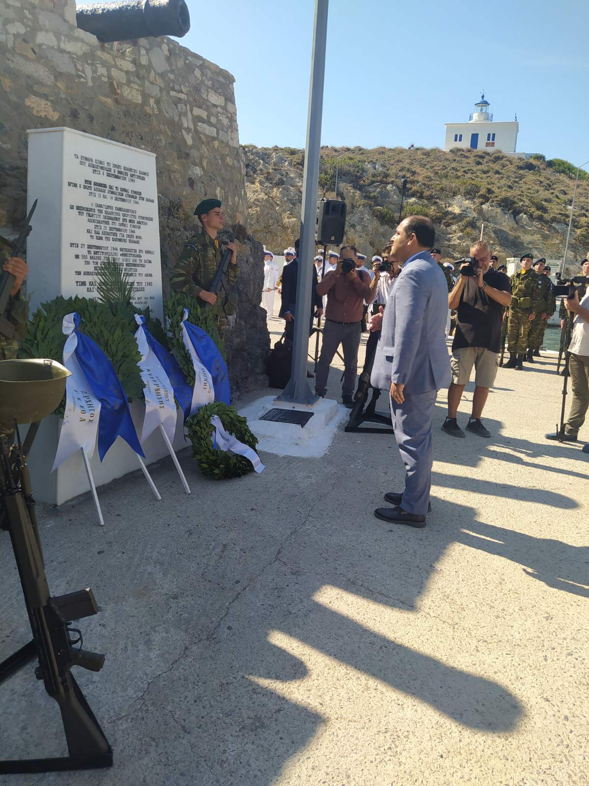 Για τις εκδηλώσεις έφθασαν στα Κύθηρα η τορπιλάκατος ΝΤΕΓΙΑΝΝΗΣ, στρατιωτικά αγήματα, η μπάντα του Πολεμικού Ναυτικού και, ως εκπρόσωπος της κυβέρνησης και του πρωθυπουργού ο υπουργός Εθνικής Άμυνας κ. Νικ. Δένδιας, που κατέθεσε στεφάνι στο μνημείο στο Καψάλι, συνοδευόμενος από τον Αρχηγό Ενόπλων Δυνάμεων Στρατηγό Χούπη. Στις εκδηλώσεις παρέστησαν και κατέθεσαν στεφάνια οι βουλευτές κκ Κ. Κατσαφάδος και Ν. Βλαχάκος, ο Δήμαρχος κ. Ε. Χαρχαλάκης, ο Πρόεδρος της Εγχωρίου κ. Ε. Βενάρδος και ο 100όχρονος αντιστασιακός κ. Εμμ. Δαπόντες. Παρέστη επίσης ο Αντιπεριφερειάρχης Πειραιά κ. Ι. Βουτσινάς. Είχε προηγηθεί επιμνημόσυνος δέηση από το Μητροπολίτη κκ Σεραφείμ, ενώ νωρίτερα, στον Καθεδρικό ναό του Εσταυρωμένου στη Χώρα είχε γίνει Δοξολογία.