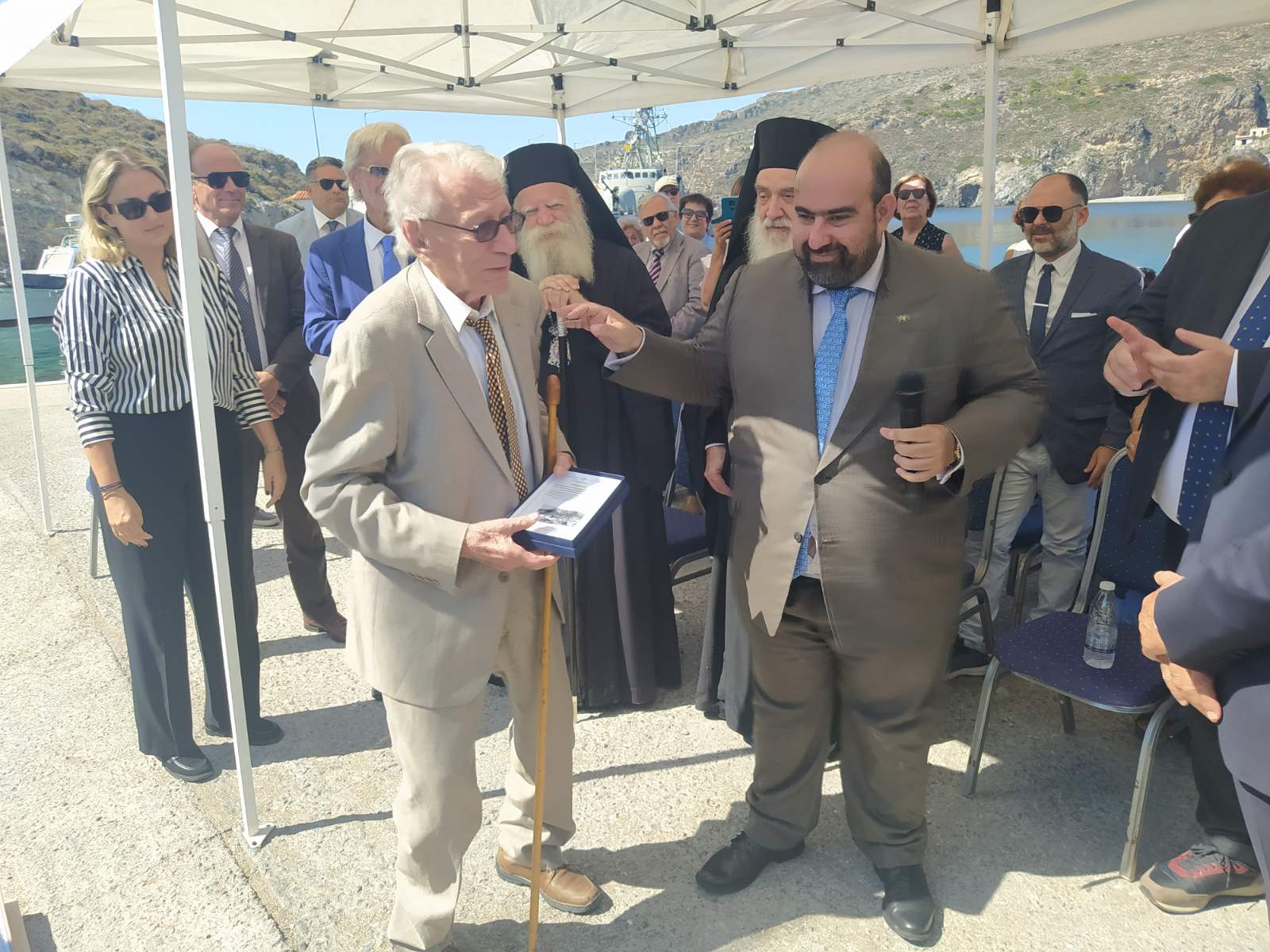Στη συνέχεια ο Δήμαρχος επέδωσε αναμνηστική πλακέτα στον κ. Εμμ. Δαπόντε.