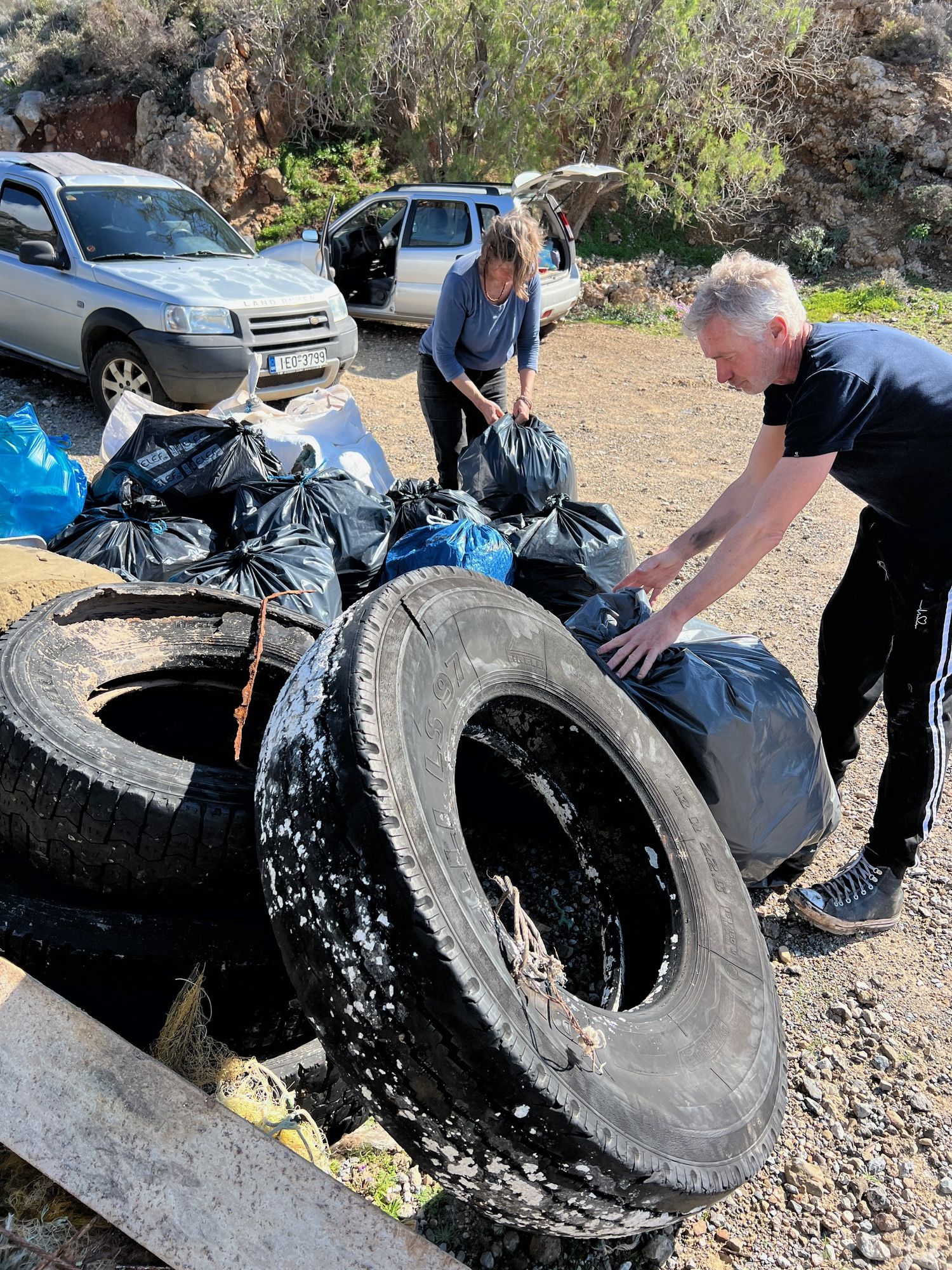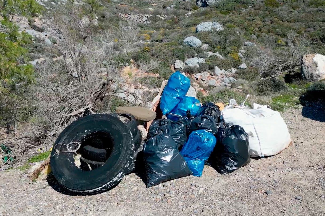Τόσος ήταν ο τελικά συσσωρευμένος όγκος από γεμάτες μαύρες σακούλες και άλλα ογκώδη αντικείμενα που η απομάκρυνσή τους ξαφνικά φάνταζε πρόβλημα για τους εθελοντές, που είχαν κατέβει τον κακοτράχαλο δρόμο από τα Μυρτίδια με απλά επιβατικά αυτοκίνητα. Ευτυχώς, τηλεφωνήματα της τελευταίας στιγμής στους δημοτικούς συμβούλους Γιώργο Κομνηνό και Γιάννη Κατσανεβάκη έλυσαν το πρόβλημα. Πρόθυμος ως συνήθως να συνδράμει με κάθε τρόπο τις εθελοντικές πρωτοβουλίες, ο κύριος Κατσανεβάκης φρόντισε να πάει ο ίδιος το επόμενο πρωί (Κυριακάτικα!) στα Λιμνάρια με μικρό φορτηγό του Δήμου και να τα φορτώσει. Τον ευχαριστούμε ειλικρινά!
