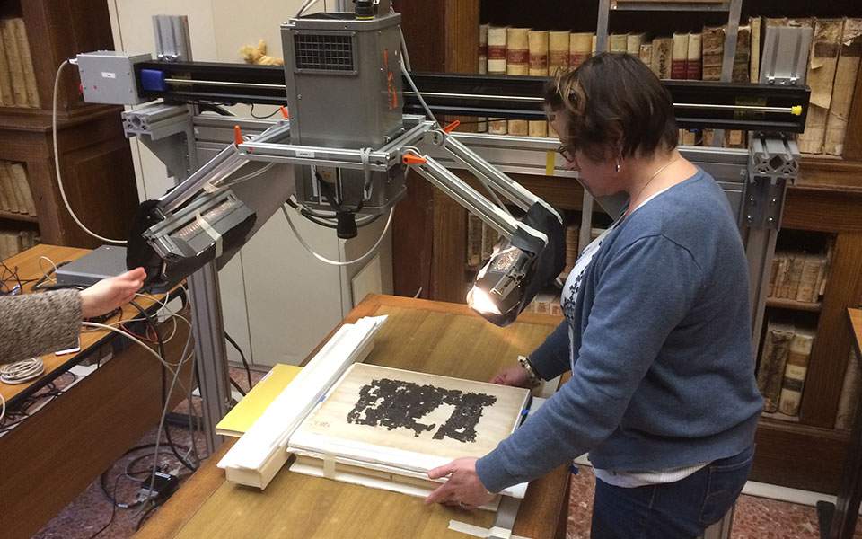 Ιταλοί και άλλοι Ευρωπαίοι επιστήμονες κατάφεραν για πρώτη φορά, χρησιμοποιώντας μια υψηλής τεχνολογίας μη επεμβατική μέθοδο απεικόνισης, να δουν τμήματα του αρχαιοελληνικού κειμένου που βρίσκεται κρυμμένο στην πίσω πλευρά ενός από τους διάσημους παπύρους του Ηρακλείου (Herculaneum scrolls).
