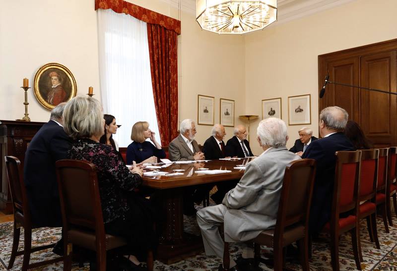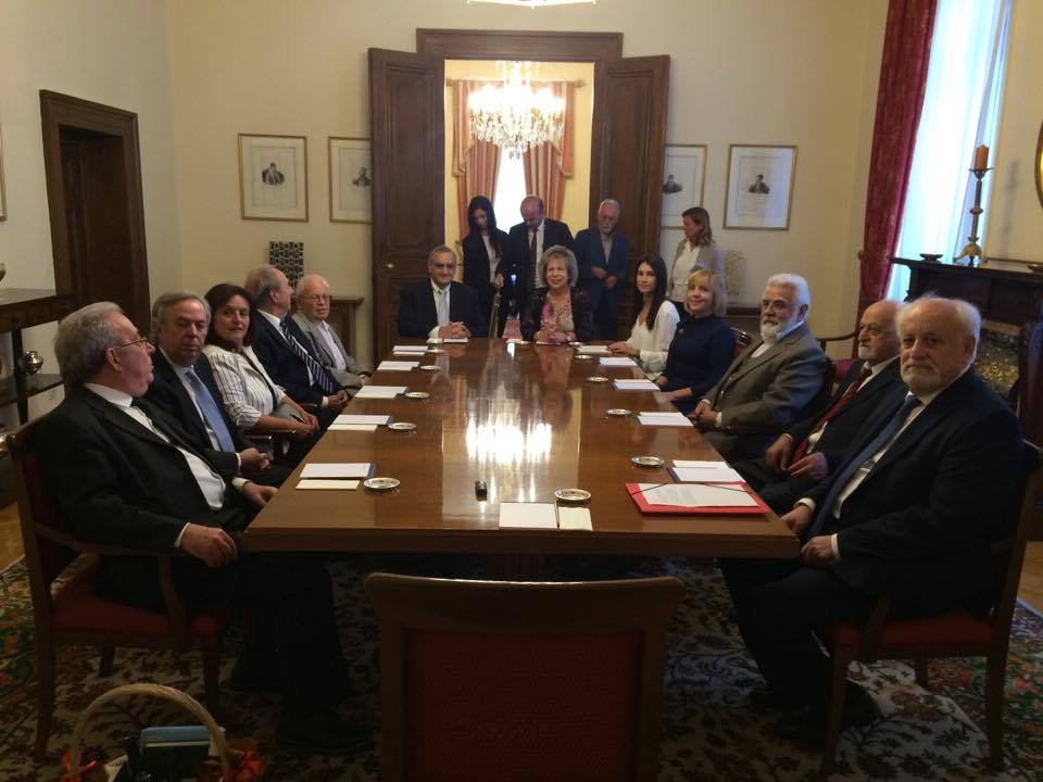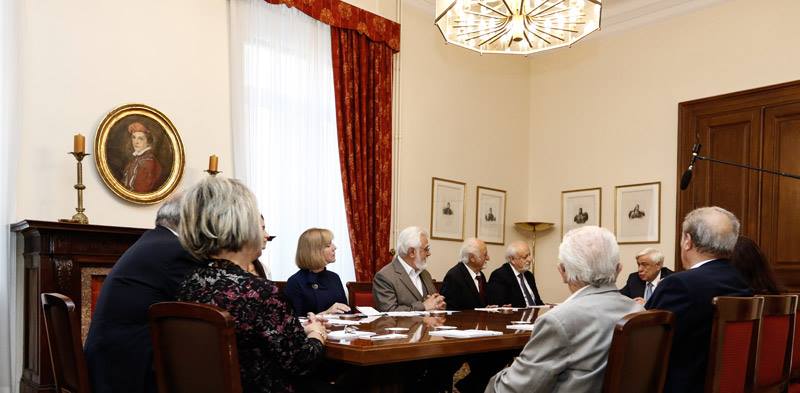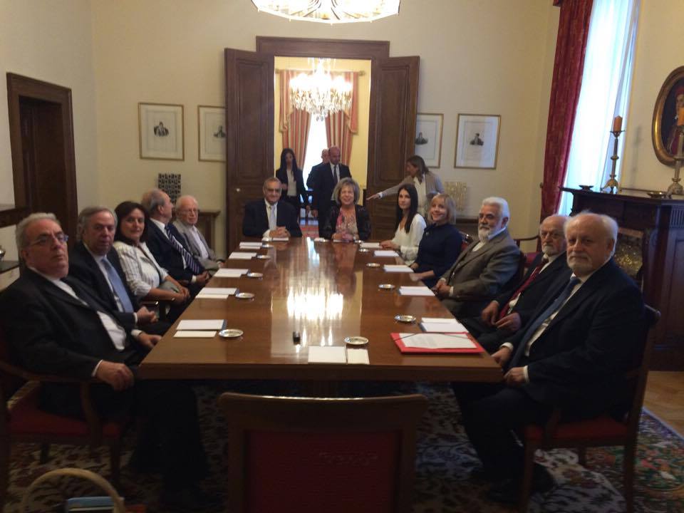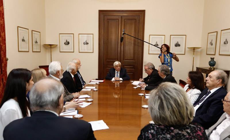 ΠΡΟΕΔΡΟΣ: Θέλω να σας ευχαριστήσω γι’ αυτή την συνάντησή μας. Γιατί όλοι μας -κι εγώ προσωπικά- εκτιμούμε τη μεγάλη προσφορά της Επτανησιακής Συνομοσπονδίας. Συνεισφορά η οποία αφορά όλο τον Ελληνικό Πολιτισμό. Μπορεί να ασχολείσθε κυρίως με τα θέματα του Επτανησιακού Πολιτισμού, αλλά ας μην ξεχνάμε ότι ο Επτανησιακός Πολιτισμός είναι ένα απ’ τα βασικά κομμάτια του Πολιτισμού μας γενικότερα, πολλώ μάλλον διότι έχει μπολιάσει όλον τον Ελληνικό Πολιτισμό. Και μάλιστα σε κρίσιμες στιγμές για τον Τόπο. Θέλω να σας συγχαρώ επίσης και για κάτι άλλο, το οποίο αποκτά πια ιστορικές διαστάσεις. Αυτή η πρωτοβουλία που είχατε όταν συμπληρώθηκαν τα 150 χρόνια από την Ένωση το 2014, όταν τον Ιούνιο στο Θέατρο Ηρώδου του Αττικού, κάνατε αυτή την μοναδική παράσταση, όπου παρουσιάστηκε όλο το έργο του Διονυσίου Σολωμού, ο «Ύμνος εις την Ελευθερία». Δεν νομίζω ότι υπάρχει προηγούμενο να παρουσιασθεί όλο αυτό το έργο του Διονυσίου Σολωμού. Γι αυτό σας είπα ότι αυτή η παράσταση της εποχής είναι ιστορική, σημαδιακή και να συνεχίσετε προς αυτή την κατεύθυνση. Όπως γνωρίζετε δίνω την έμφαση που πρέπει και την οφείλω άλλωστε στα Επτάνησα. Τέλος του μήνα θα βρίσκομαι στην Κέρκυρα για τις εκδηλώσεις που θα κάνουμε εκεί για τον Καποδίστρια. Αλλά θέλω να γνωρίζετε ότι και εγώ όπως και οι προκάτοχοί μου και είμαι βέβαιος και εκείνοι που θα έρθουν στη συνέχεια, θα στηρίξουμε την προσπάθειά σας. Θα ΄μαστε παρόντες στα Επτάνησα. Ποτέ δε λησμονάμε την προσφορά τους, μέσα στην Ιστορία, αλλά ιδίως σήμερα. Και πάλι σας ευχαριστώ, καλή δύναμη και καλή επιτυχία σε όλους σας.