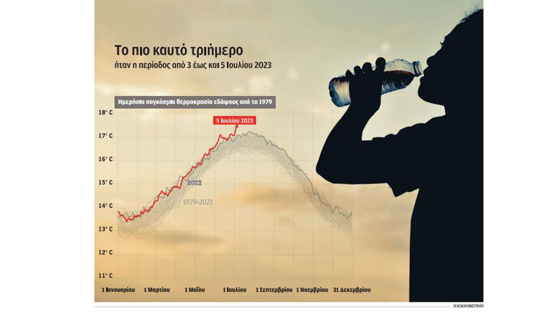 Την Τρίτη, η μέση θερμοκρασία της Γης έφθασε τους 17 βαθμούς Κελσίου, απόλυτο ρεκόρ από το 1940, όταν άρχισε να τηρείται τέτοιο αρχείο, σύμφωνα με ανάλυση της ευρωπαϊκής υπηρεσίας «Κοπέρνικος». Καθώς αυτή η τιμή αφορά μέσο όρο, ορισμένες περιοχές του πλανήτη χτυπήθηκαν πιο σκληρά από καύσωνες.