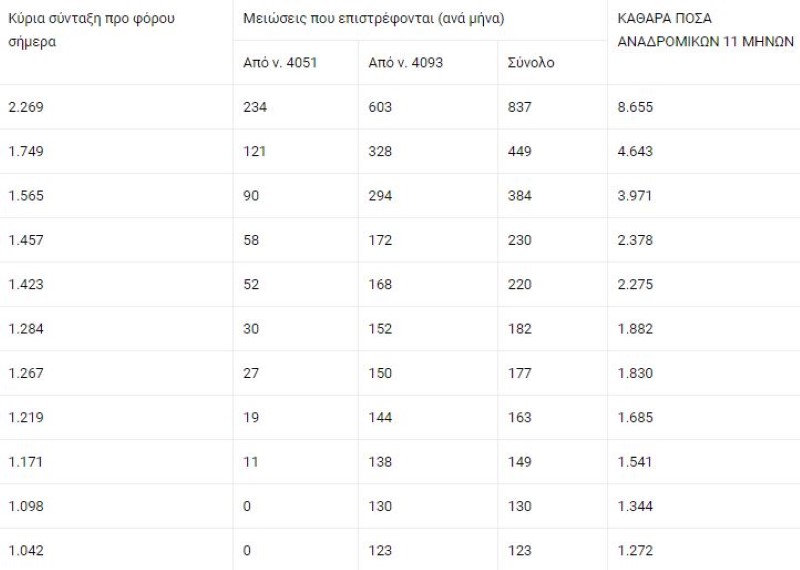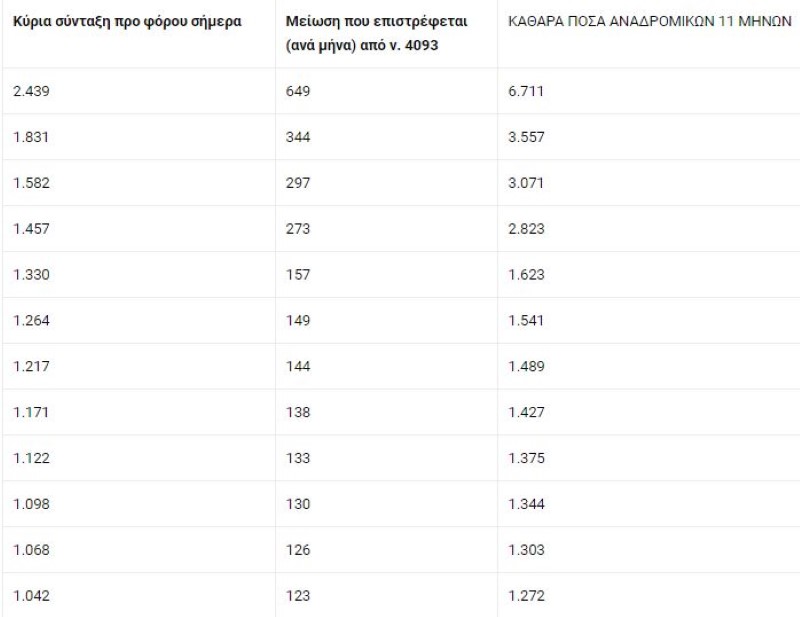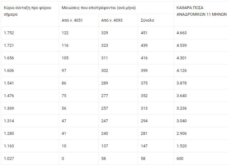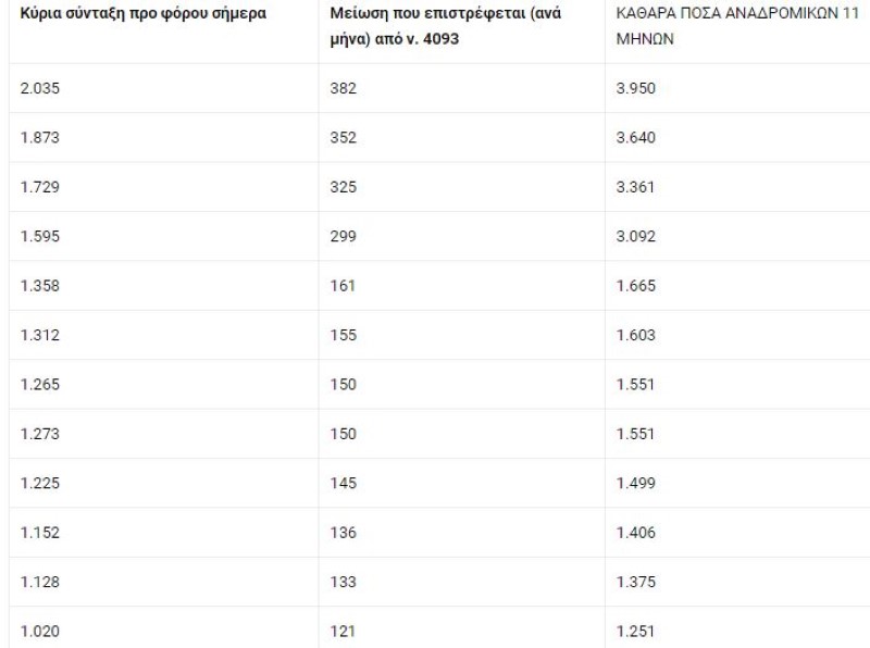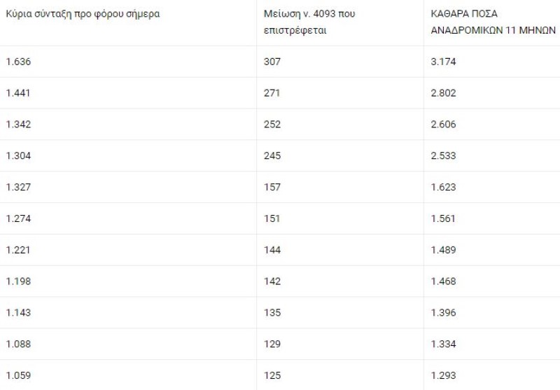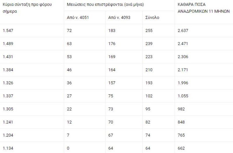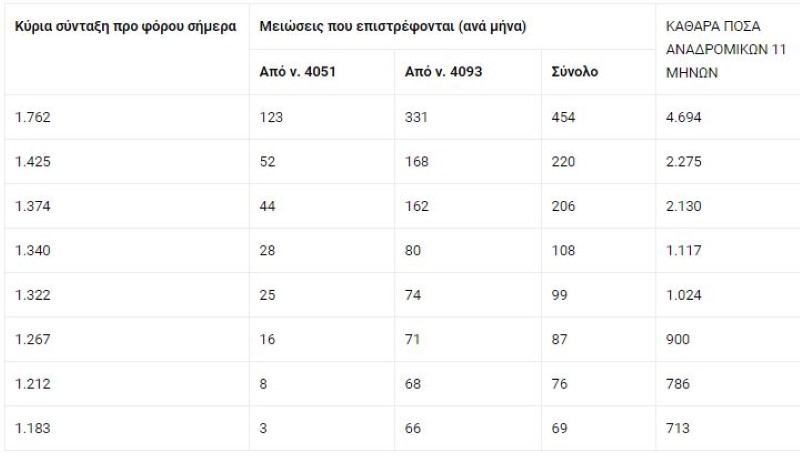 ΣΥΝΤΑΞΙΟΥΧΟΙ ΝΑΤ (επιστρέφεται η μείωση νόμου 4093): Συνταξιούχος με 1.636 ευρώ προ φόρου σήμερα, δικαιούται αναδρομικά 3.174 ευρώ • Συνταξιούχος με κύρια σύνταξη 1.221 ευρώ προ φόρου, δικαιούται αναδρομικά 1.489 ευρώ • Συνταξιούχος με κύρια σύνταξη 1.088 ευρώ προ φόρου, δικαιούται αναδρομικά 1.334 ευρώ