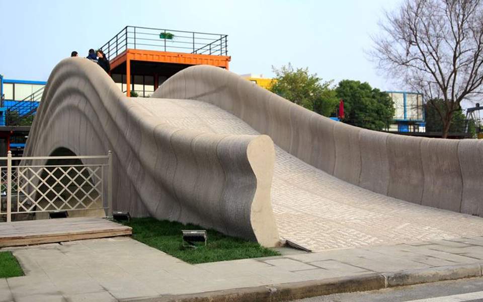 Η μεγαλύτερη πεζογέφυρα του κόσμου που κατασκευάστηκε εξ ολοκλήρου από τρισδιάστατο εκτυπωτή ολοκληρώθηκε στη συνοικία Μπαοσάν της Σαγκάης.
