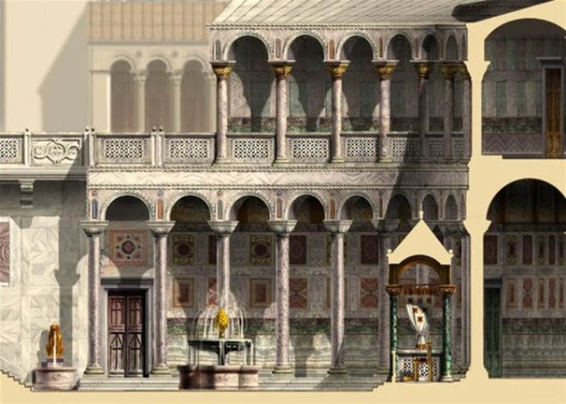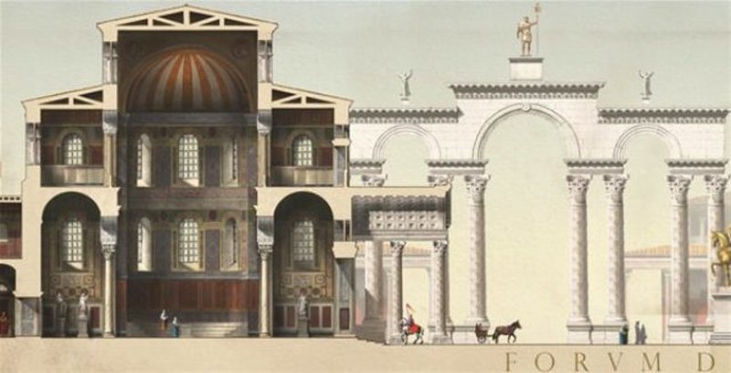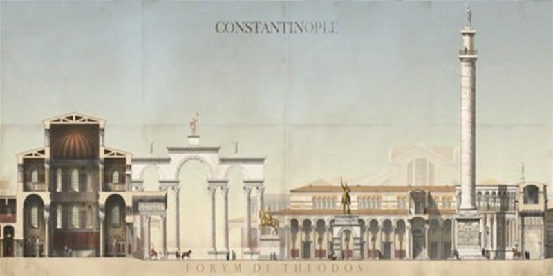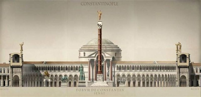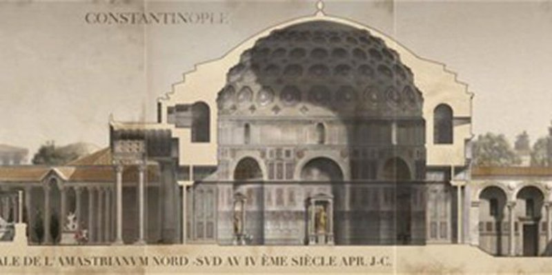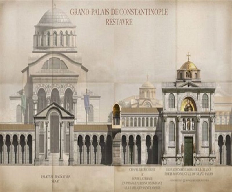 Μέσα από αναπαραστάσεις αρχαιολόγων, αποτυπώνεται η αίγλη της Βασιλεύουσας πριν πέσει στα χέρια των Οθωμανών, ενώ μεταξύ των απεικονίσεων ξεπροβάλλουν η Αγία Σοφία καθώς και εμβληματικά μνημεία της εποχής.