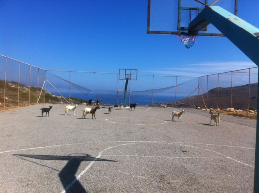 Τα Αντικύθηρα, με τις χιλιάδες κατσίκια που δεν αφήνουν χλωρό φύλλο, έκαναν την παγκόσμια διαφορά στη ζωοφιλία, αφού είναι το μόνο μέρος που οι κατσίκες του διαθέτει αυτό το άρτιο προπονητικό κέντρο. Όποιος κακεντρεχής πει ότι αυτά φέραν τούτα να βγάλει το σκασμό, καθώς κι εκεί ο τόπος είχε ανάγκη από μακρόπνοα έργα, όπως το γήπεδο μπάσκετ.