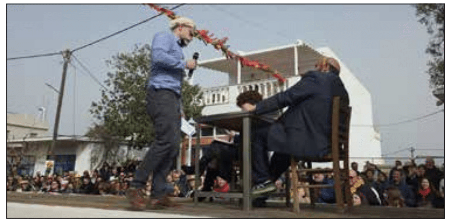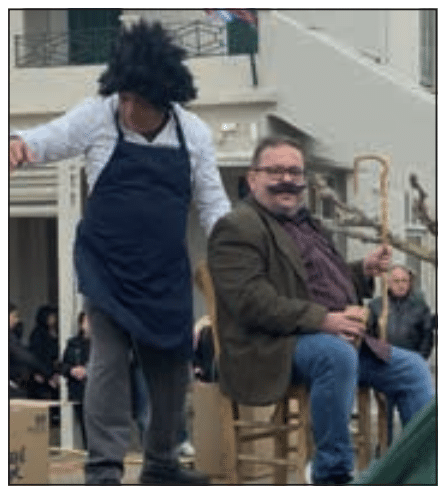 Εμείς από τις φωτογραφίες ξεχωρίσαμε τα εξαιρετικά κορίτσια στο Γαϊτανάκι και τους πιο επιτυχημένους μασκαράδες, τον, πάντα, επίκαιρο Μηνά Γλυτσό ως Φραπέ και το «ταίρι» του στον ΟΠΕΚΕΠΕ, Κ. Στάθη-Μπακιλάτσο, που μάλλον πάνε για το Φεστιβάλ Βενετίας αμφότεροι.