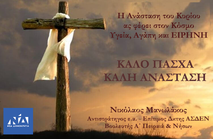 Ευχές από Νικόλαο Μανωλάκο – Αντιστράτηγο ε. α. -Επίτιμο Δκτη ΑΣΔΕΝ – Βουλευτή Ν.Δ. Α΄ Πειραιώς & Νήσων