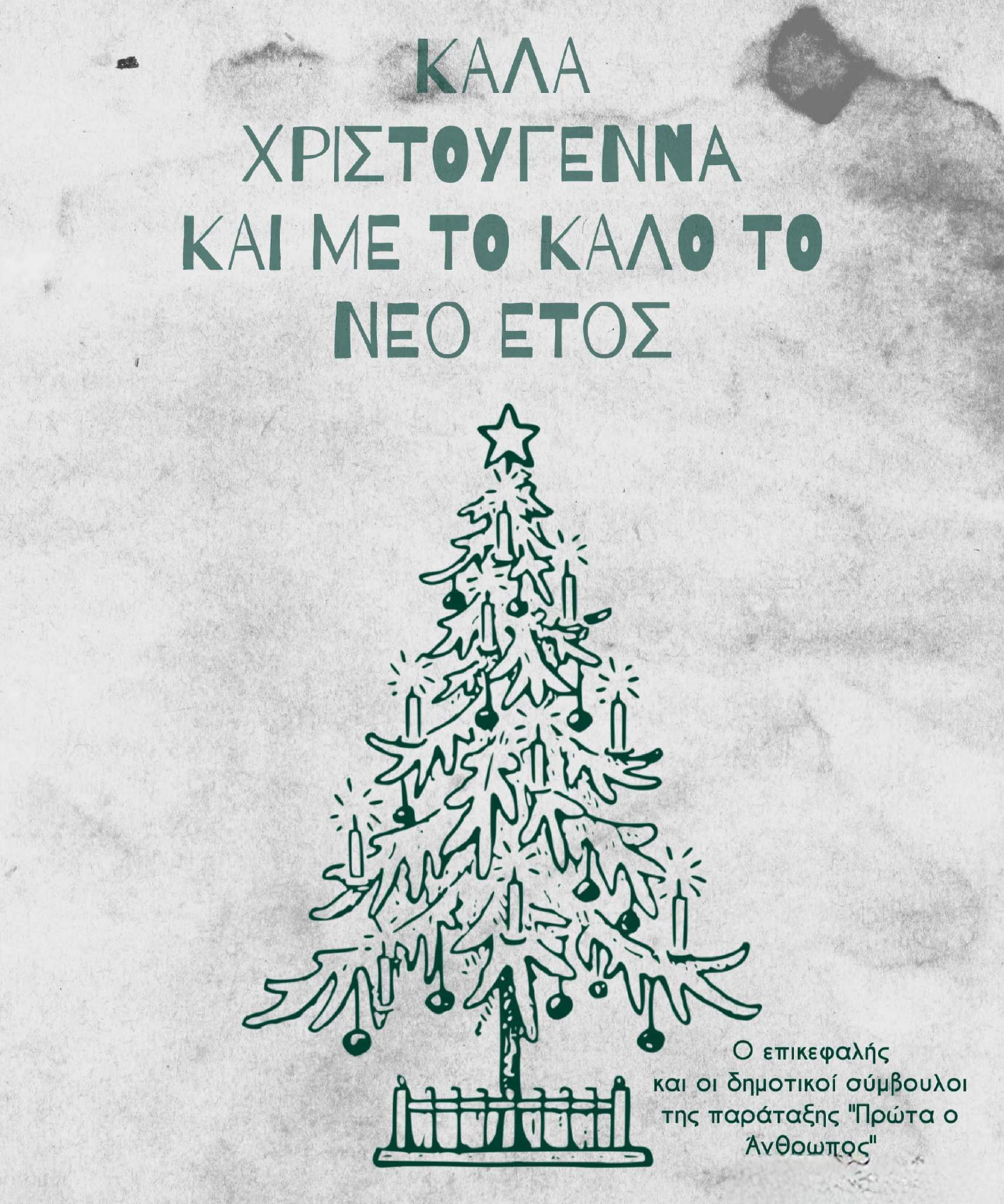 Εκ μέρους της δημοτικής Παράταξης “Πρώτα ο Άνθρωπος” ευχόμαστε σε εσας κ τους αναγνωστες σας Χρονια Πολλα και Καλες γιορτες.