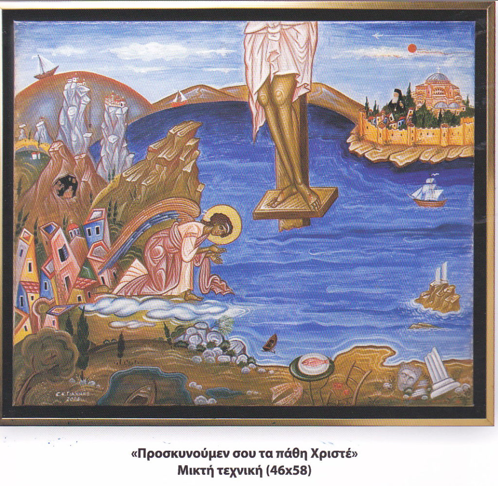Ο ίδιος ο αγιογράφος σημειώνει ότι, «Αν επέλεξα τον τίτλο της έκθεσης «Ορθόδοξη Εικόνα, η σώζουσα ωραιότης», είναι για να τονίσω τον σωτηριολογικό-εσχατολογικό χαρακτήρα της ορθόδοξης Εικονογραφίας. Και για να πω ότι η προσπάθειά μου απέβλεπε στο να προσεγγίσει και να δείξει-φανερώσει αυτό το κάλλος. Να δείξει –ακόμα και στις μη καθαυτό Εικόνες, στις «φιλοκαλικές συνθέσεις» μου, όπως τις αποκαλώ – τη φωτεινή των πραγμάτων πλευρά. Τα πρόσωπα, αλλά και σύμπασα την Κτίση, να ακουμπούν στην πλάτη του Μόνου, του Ενός. Στο σαρκωμένο Κάλλος και στο σαρκωμένο φως. Προσπάθησα, στο ζόφος των καιρών, να φανερώσω το φως της καρδιάς των πλασμάτων, που υμνούν εν σιγή τον Πλάστη· την ιλαρότητα των ταπεινών, στους βάρβαρους καιρούς της αλαζονείας. Προσπάθησα οι Εικόνες μου και οι ζωγραφιές μου να είναι ανθοδέσμη από χαμόγελα της Δημιουργίας και ψίθυρος που φθογγίζει ότι ο Θεός είναι Φως και Ομορφιά»