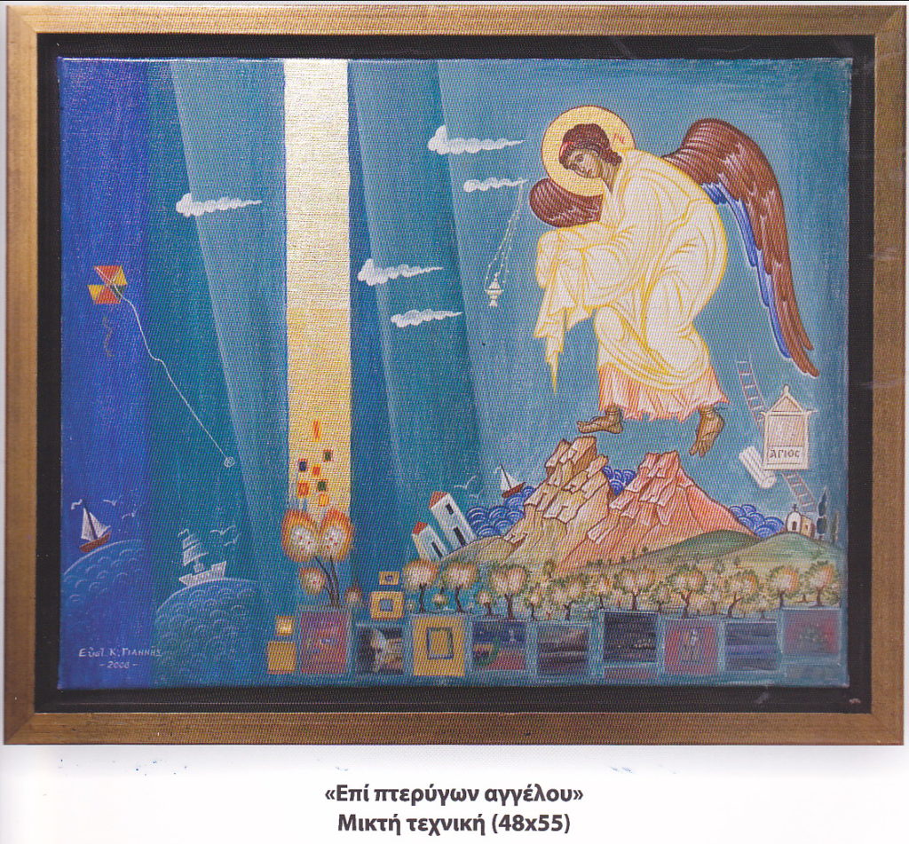 Ο Ευστάθιος Γιαννής, Θεολόγος με σπουδές Θεολογίας στη Χάλκη και Φιλοσοφίας στο Βέλγιο, διδάκτωρ της Παιδαγωγικής και Σχολικός Σύμβουλος μέχρι το 2007, δεν είναι Κυθήριος, αλλά Αρτινός. Είναι όμως γνωστός στα Κύθηρα, καθώς, μέχρι λίγα χρόνια πριν, ήταν τακτικός «Δεκαπεντιστής» στα Μυρτίδια, όπου τον γνώρισαν και τον εκτίμησαν πολλοί συμπατριώτες μας, όχι μόνον από την επιτυχή «θητεία» του στον καλανάρχο των Μυρτιδίων. Τώρα, που λόγοι ανωτέρας βίας τον κρατούν μακριά από τον αγαπημένο του τόπο, είπαμε να κάνουμε ένα μικρό αφιέρωμα στην άλλη του ιδιότητα, αυτήν του αγιογράφου. Με ατομικές και ομαδικές εκθέσεις στο ενεργητικό του δίνει το αγιογραφικό του στίγμα με την άψογη τεχνική της Κρητικής Σχολής, με διαχρονικές παραπομπές που φανερώνουν τη βιωματική προσέγγιση της ιστορίας από το ζωγράφο και ανακαλούν στο θεατή ανάλογες μνήμες και βιώματα, μεταδίδοντάς του την αίσθηση της θαλπωρής της συνέχειας, που είναι και το μεγάλο πλεονέκτημα της Παράδοσης, όπως παρατηρεί ο καθηγητής Νίκος Ζίας.