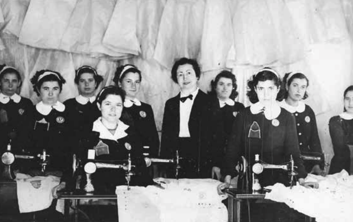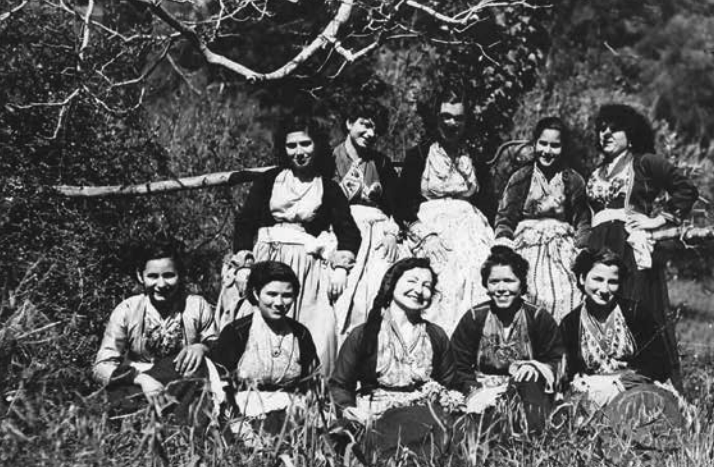 Μία άλλη με τα ίδια πρόσωπα ντυμένα με τοπική ενδυμασία είναι στη Βρύση στα Τριφυλιάνικα. Στη φωτογραφία με τις ραπτομηχανές διακρίνονται από δεξιά προς αριστερά. Ζαχαρούλα Πολ. Γερακίτη, Ελένη Δ. Παναρέτου, Ελισσάβετ Χρυσαφίτη (πίσω), Αναστασία Αντ. Μαυρομμάτη (εμπρός), Βούλα Π. Βενάρδου, Κούλα Θ. Σουρή (εμπρός), Μαρία Ορ. Γκουβούση –Λαμπράκη, Ελένη Εμμ. Καστρισίου και Μαρία Καστρισίου. Στη μέση η δασκάλα τους.