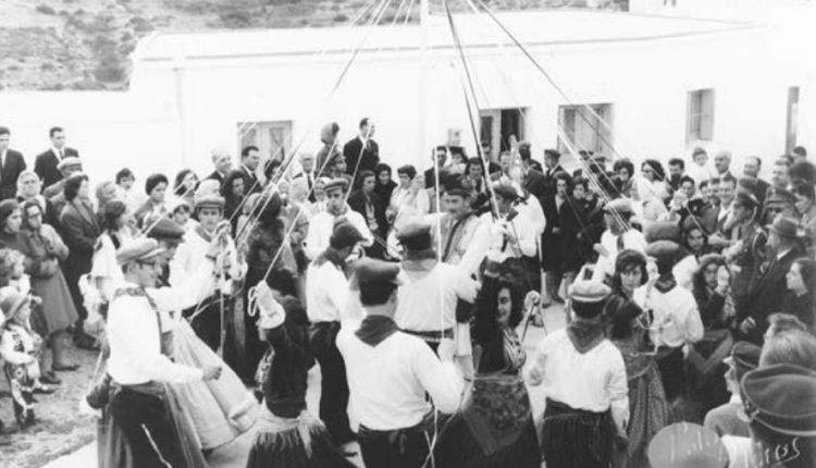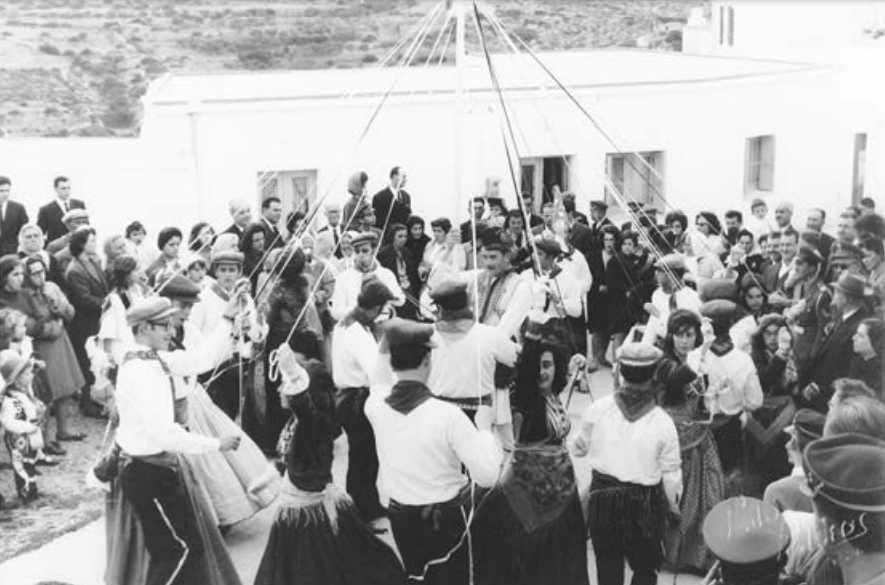 Μία ακόμη φωτογραφία που μας μεταφέρει στις απόκριες της δεκαετίας 1960(1961 ή 62) με το παραδοσιακό γαϊτανάκι της Χώρας, στο χώρο έξω από την Αστυνομία.
