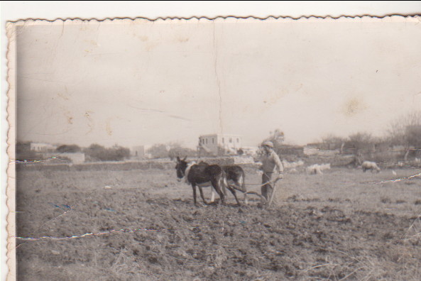 Στην τρίτη φωτογραφία, που χρονολογείται ίσως λίγο ενωρίτερα από τις άλλες δύο, διακρίνεται ένας γεωργός να οργώνει το χωράφι του με τα γαϊδουράκια. Λίγο αργότερα έφθασαν τα τρακτέρ και άρχισε η μηχανική άρωση. Όμως ο κόσμος είχε ήδη αρχίσει να φεύγει μαζικά στο εξωτερικό και σιγά-σιγά τα χωριά ερήμωναν από νέους ανθρώπους. Ο εικονιζόμενος αγρότης είναι ο Θεόδωρος Ι. Καραβουσάνος, ο οποίος έφυγε από τη ζωή το μήνα που πέρασε πλήρης ημερών. Όλες οι φωτογραφίες ανήκουν στο αρχείο του φίλου Γιάννη Καραβουσάνου (Τοξότη) και μας φέρνουν πίσω στα χρόνια της μαθητικής μας ηλικίας.