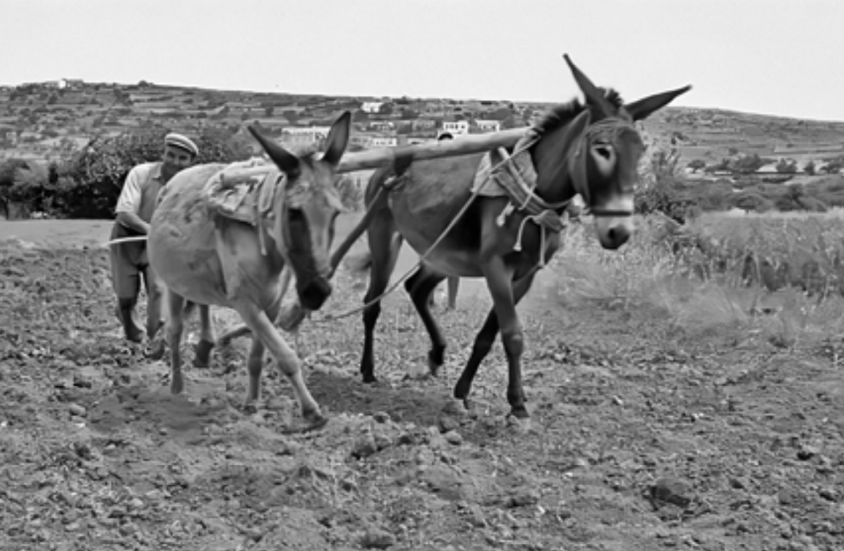 Μία ακόμη φωτογραφία από το αρχείο Σταμ. Γιαννιώτη από την αγροτική ζωή στα Κύθηρα τη δεκαετία του 1960. Ένας από τους πλέον έμπειρους και νοικοκύρηδες αγρότες στην περιοχή την εποχή αυτή, ο Αντώνης Βάρδας, οργώνει με δύο γαϊδουράκια ένα χωράφι στον κάμπο του Λειβαδίου. Λίγο πριν «εισβάλλουν» τα τρακτέρ και η μηχανική καλλιέργεια και αδειάσει το νησί από αγρότες.