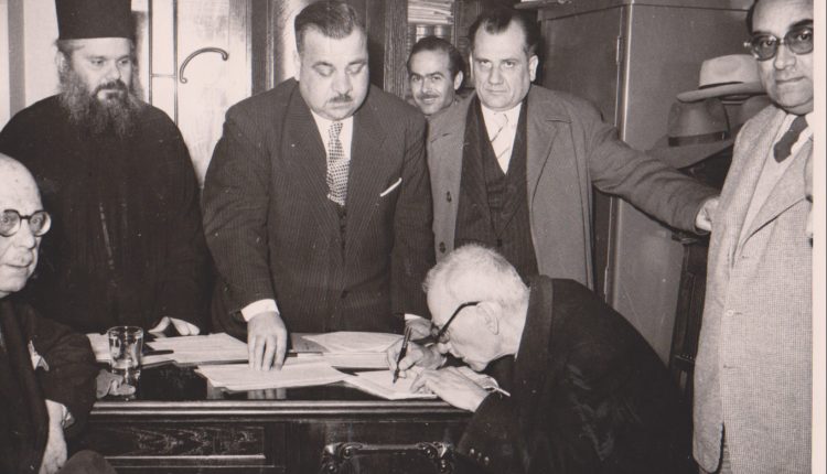 ΦΩΤΟΓΡΑΦΙΚΕΣ ΜΝΗΜΕΣ. Μια ιστορική φωτογραφία. Η σύσταση του Τριφυλλείου Ιδρύματος, (13 Μαρτίου 1954).