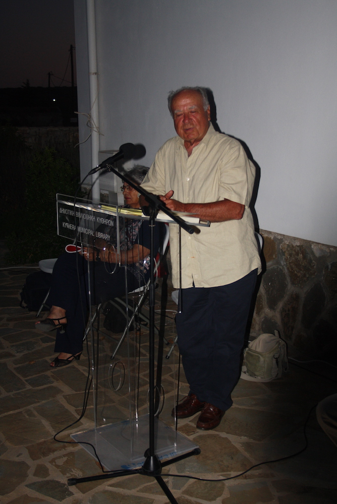 Στα Κύθηρα, την παρουσίαση του βιβλίου του οργάνωσε η εφημερίδα ΚΥΘΗΡΑΪΚΑ σε συνεργασία με το ΔΗΜΟ ΚΥΘΗΡΩΝ στις 19 Ιουλίου στη Δημοτική Βιβλιοθήκη στα Κοντολιάνικα.