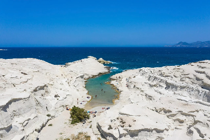 Το σεληνιακό τοπίο του Σαρακήνικου στη Μήλο, που έχει ψηφιστεί ως μια από τις ομορφότερες παραλίες στον κόσμο, συνεχίζει να μαγεύει τους ταξιδιώτες με τη σπάνια γεωλογική ομορφιά του.