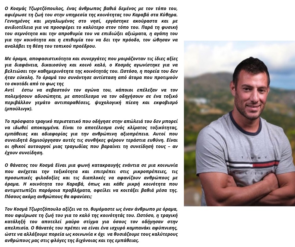 Για τον άδικο χαμό του Κοσμά Τζωρτζόπουλου