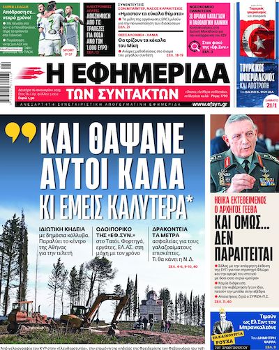 Ουσιαστικά το ίδιο ζητεί και ο ΣΥΡΙΖΑ, απλώς δεν έχει βγει ακόμα η Τσαπανίδου να μας το πει. Υπάρχουν δημοσιεύματα που εμφανίζουν τον αρχηγό ΓΕΕΘΑ περίπου ως αναξιοπρεπή επειδή δεν παραιτείται καταγγέλλοντας την παρακολούθησή του. Να διαβάσει, δηλαδή, ο Φλώρος το Documento και μετά να παραιτηθεί. Αυτό για τον ΣΥΡΙΖΑ ακούγεται λογικό.