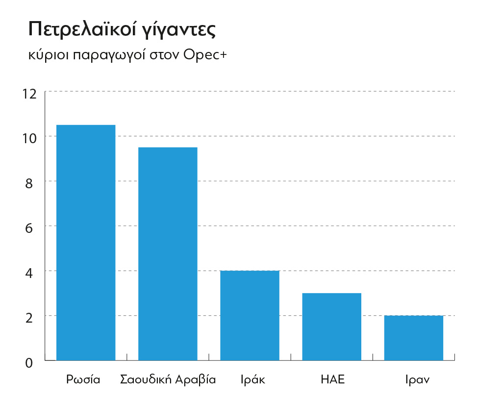 Οσον αφορά τη Ρωσία, ο Opec+ καλείται επίσης να σεβαστεί τις επιθυμίες της, καθώς η χώρα είναι ένας από τους δύο μεγαλύτερους εταίρους του οργανισμού. «Οι Ρώσοι είναι ευχαριστημένοι με τις τιμές σε αυτά τα επίπεδα», είπε η Κάρολ Νάκλι, διευθύνουσα σύμβουλος της Crystol Energy. «Δεν έχουν τίποτα να κερδίσουν από τη μείωσή τους. Ο Opec θέλει να έχει καλές σχέσεις με τη Ρωσία, επομένως είναι πολύ πιθανό να συνεχίσουν όπως συμφώνησαν όλοι μαζί πέρυσι. Αυτό συνεπάγεται πολύ σταδιακή αύξηση της προσφοράς από σήμερα έως τον Σεπτέμβριο», συμπλήρωσε.