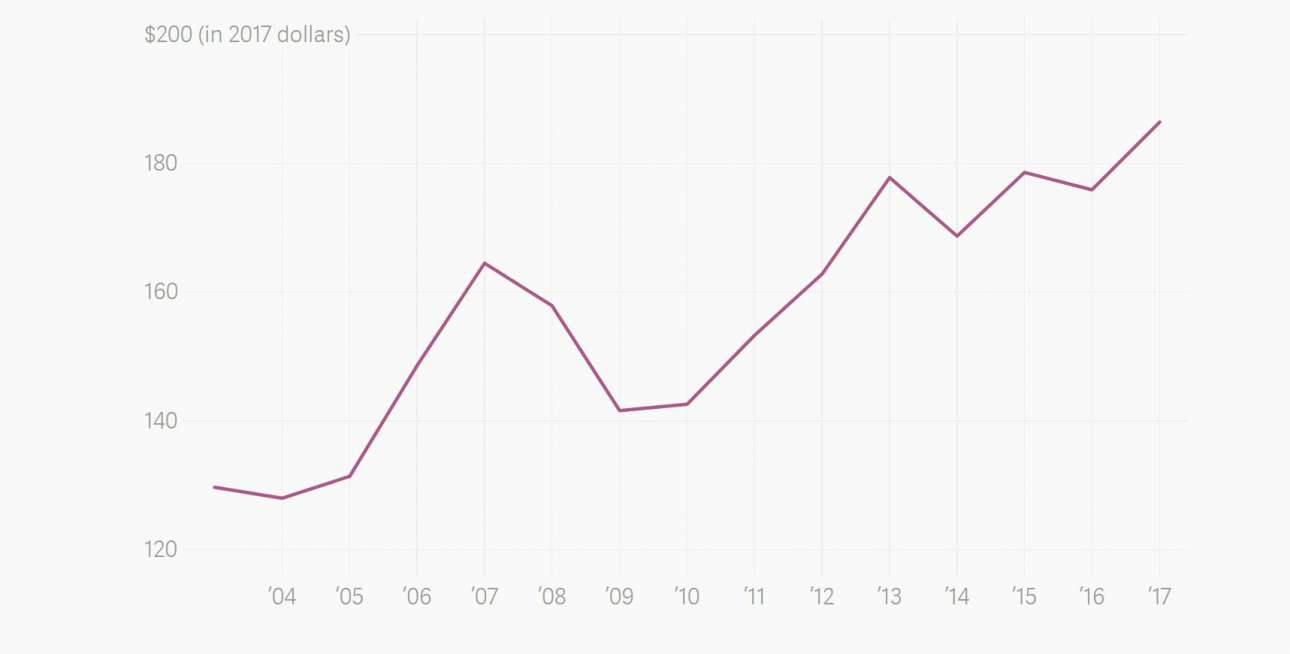 Και σίγουρα δεν θα ήταν καθόλου ευχαριστημένη αν μάθαινε πόσα χρήματα σκοπεύουν να ξοδέψουν φέτος οι Αμερικανοί για τις μαμάδες τους. Όπως γράφει το Quartz, η Εθνική Ομοσπονδία Λιανεμπορίου εκτιμά ότι κάθε Αμερικανός που θα γιορτάσει την Ημέρα της Μητέρας θα δαπανήσει για την γυναίκα της ζωής του κατά μέσο όρο 180 δολάρια και η συνολική ετήσια δαπάνη για το 2018, υπολογίζεται σε 23,1 δισ. δολάρια, ποσό με ανοδική πορεία τα τελευταία χρόνια, όπως φαίνεται στο παραπάνω διάγραμμα.