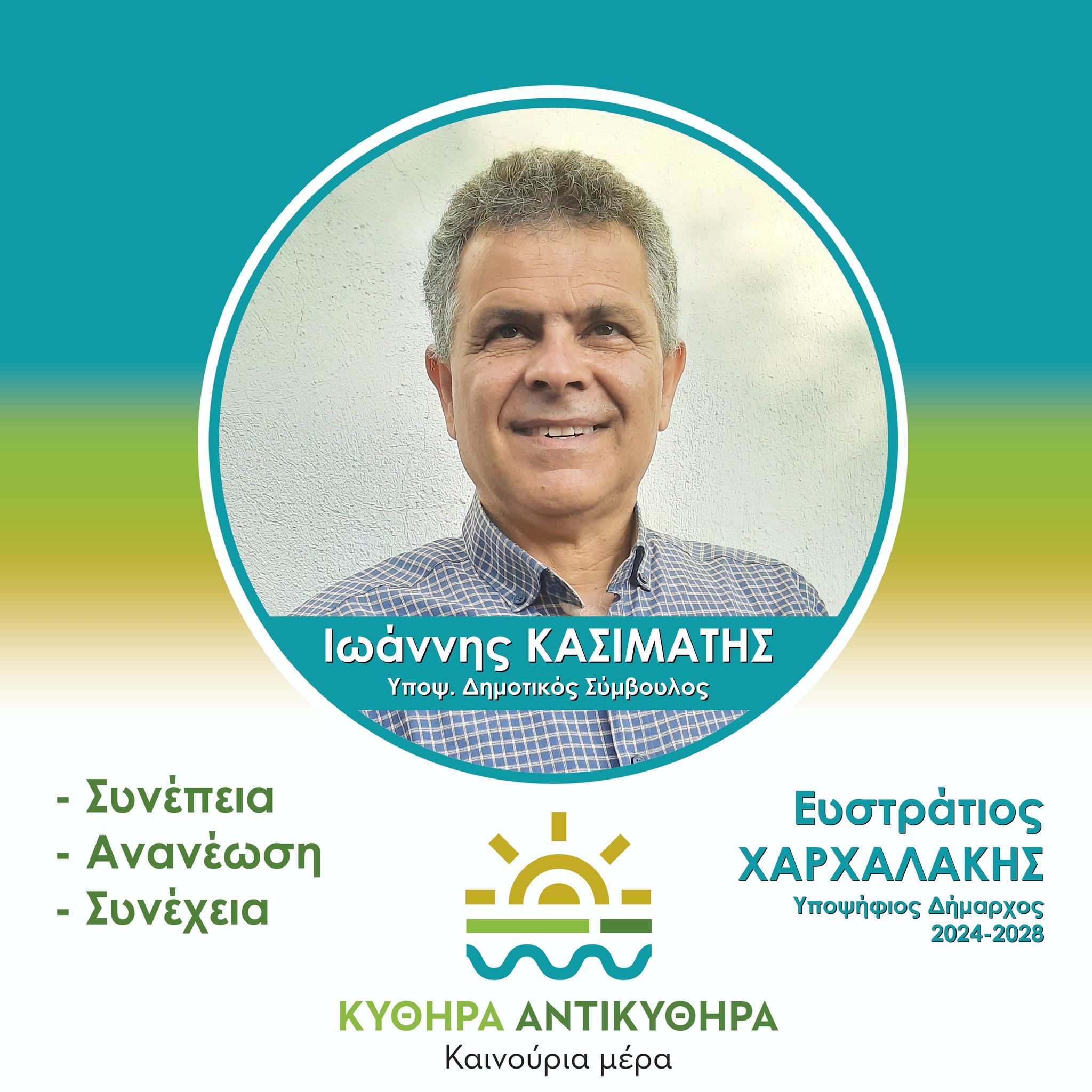 Θα ήθελα να σας ενημερώσω για την απόφασή μου να αποδεχθώ την πρόταση του Δημάρχου κ. Χαρχαλάκη να είμαι υποψήφιος Δημοτικός Σύμβουλος με το συνδυασμό του στις επερχόμενες Δημοτικές Εκλογές της 8ης Οκτωβρίου.