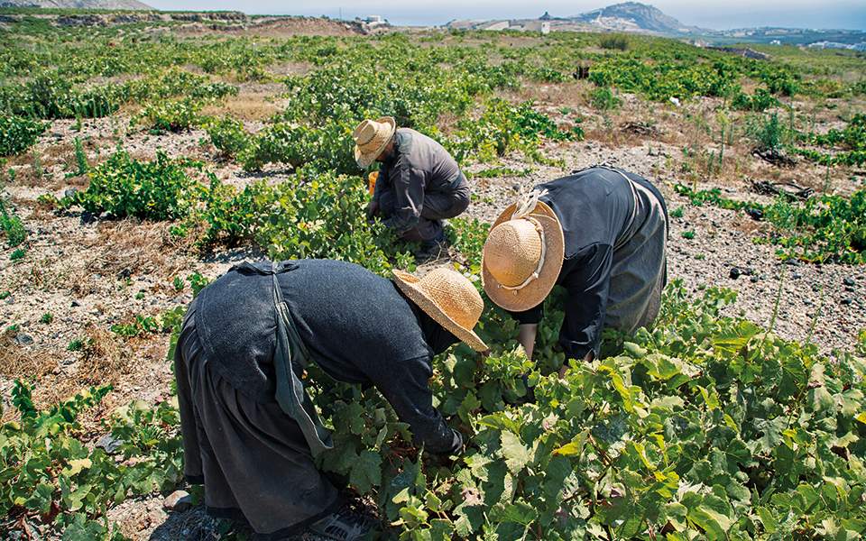 Μια γη δύστροπη, δημιούργημα ηφαιστειακών εκρήξεων. Ενας αμπελώνας πανάρχαιος, αυτόρριζος, με αμπελιές σαν φωλιές πουλιών, σωστά χειροτεχνήματα. Οι δυνατοί αέρηδες δέρνουν τα κλήματα τον χειμώνα, ο ήλιος τα τσουρουφλίζει το καλοκαίρι κι εκείνα επιμένουν να καρπίζουν κάθε χρόνο, να δίνουν πρώτη ύλη πολύτιμη στα χέρια όσων την εκτιμούν και τη σέβονται.