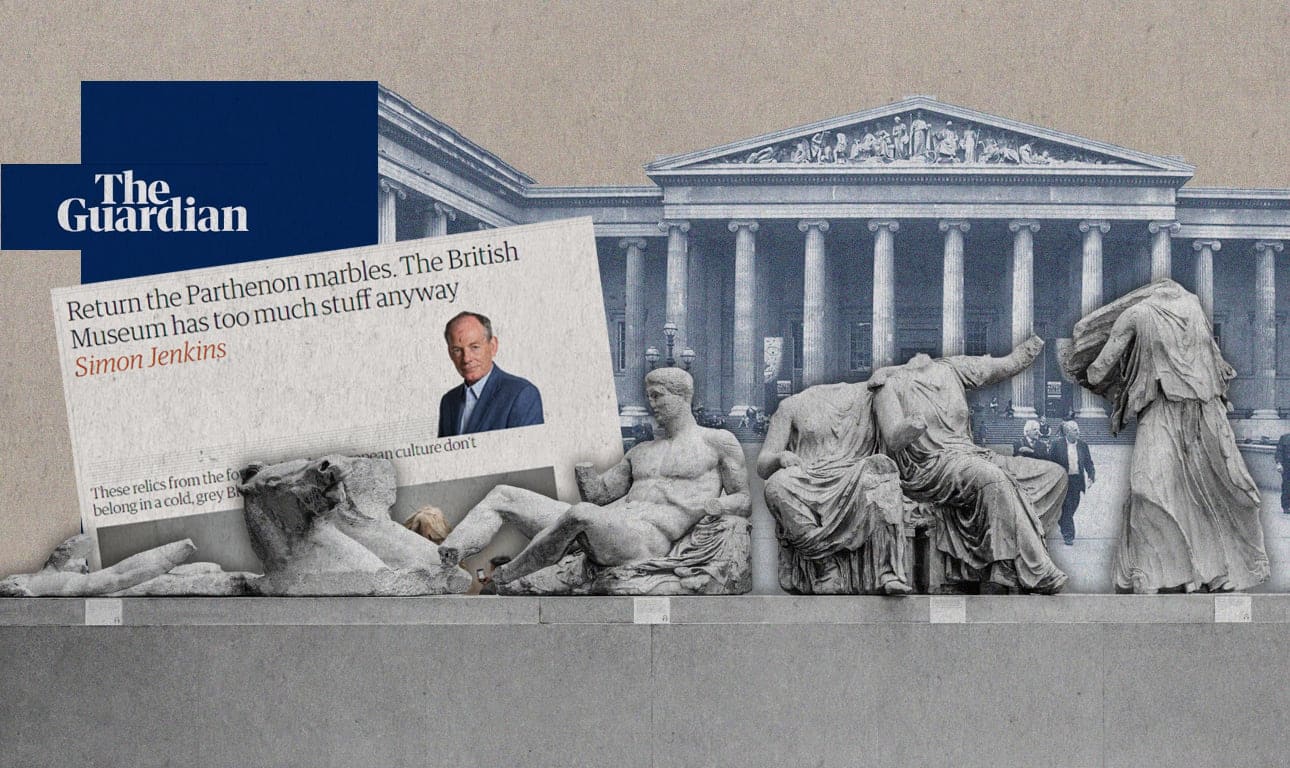 Στον απόηχο της άκομψης στάσης του Ρίσι Σούνακ απέναντι στον Κυριάκο Μητσοτάκη, άλλο ένα βρετανικό μέσο ενημέρωσης, ο Guardian, έρχεται να ζητήσει την επιστροφή των Γλυπτών του Παρθενώνα εκεί όπου ανήκουν: Στην Αθήνα. Ο αρθρογράφος Σάιμον Τζένκινς, ένας από τους πιο επιδραστικούς βρετανούς σχολιαστές, αποκαλεί τον «καβγά για τα Μάρμαρα, κάτι παραπάνω από χαζό» και γράφει ότι ο βρετανός πρωθυπουργός συμπεριφέρεται σαν παιδί που απειλούν να του πάρουν το παιχνίδι του.