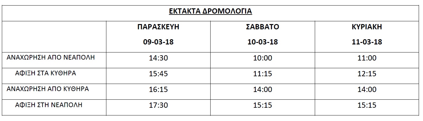 H ακινησία του Πορφυρούσα τροποποιήθηκε να λήξει αύριο 09/03/2018. Έκτακτα δρομολόγια
