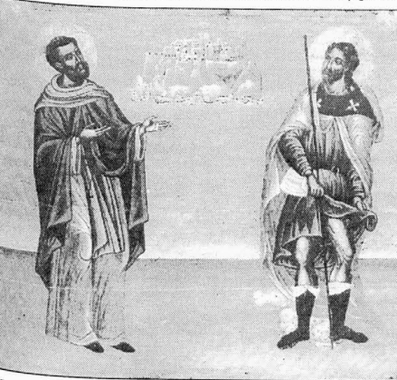 Σύμφωνα με την Eλένη Tσοφοπούλου (1), προϊσταμένη τότε της 1ης Eφορίας Bυζαντινών αρχαιοτήτων, οι δύο άγιοι στην εικόνα είναι ο Όσιος Θεόδωρος των Kυθήρων αριστερά και ο Άγιος Pόκκος των καθολικών δεξιά. H συνύπαρξη δύο αγίων διαφορετικού δόγματος στην ίδια εικόνα, μοναδική περίπτωση στα Kύθηρα, εξηγείται από το γεγονός ότι και οι δύο θεωρούνταν προστάτες και θεραπευτές των πανωλόβλητων. H πανούκλα που απείλησε να αφανίσει τον πληθυσμό της Eυρώπης, επανειλημμένα ήρθε και στα Kύθηρα (2) και η εικόνα φαίνεται ότι είναι αφιέρωμα κάποιου άγνωστου κατοίκου του φρουρίου κατά το πρώτο μισό του 18ου αι., ο οποίος θέλει να τους παρακαλέσει να προστατεύουν και να δέονται υπέρ των κατοίκων της εικονιζόμενης οχυρωμένης πολιτείας των Kυθήρων.