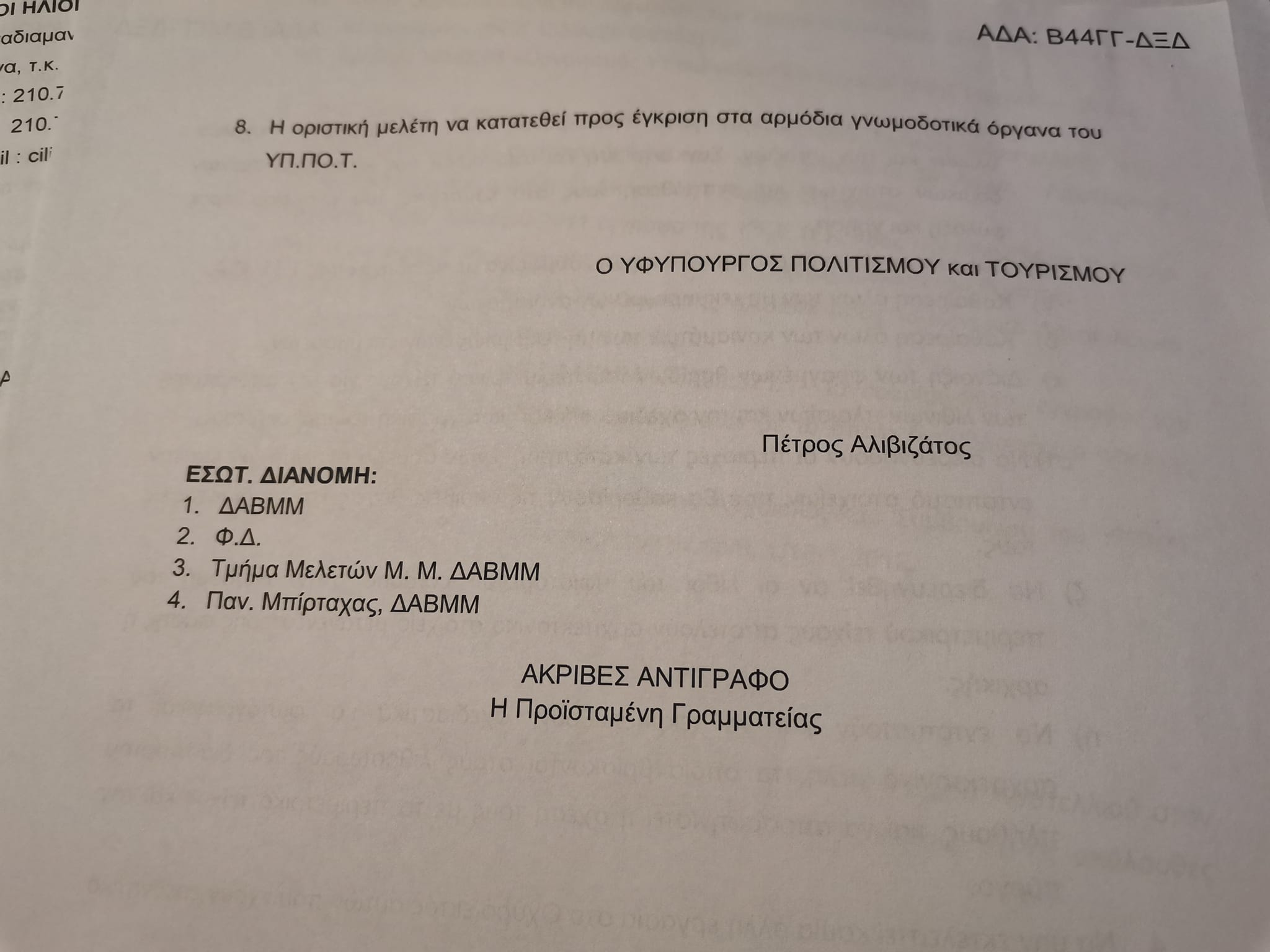 Και μάλιστα μας λέει ότι το έργο οφείλουν να κάνουν οι υπηρεσίες του ΥΠΠΟ!