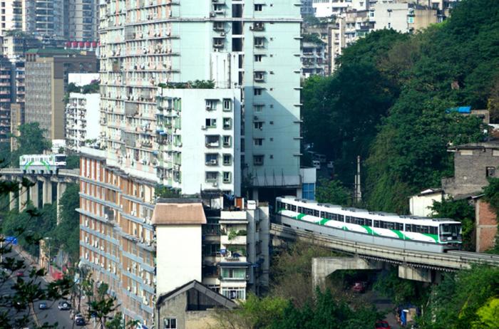 Ένα μικρό κατασκευαστικό θαύμα έχει γίνει η ατραξιόν μιας πόλης μόλις 31 εκατ. κατοίκων στο Νοτιοδυτική Κίνα. Ο λόγος για την άσημη Τσονγκινγ, η οποία έγινε… διάσημη χάρη σε μία από τις πολλές γραμμές που διαθέτει το υπέργειο μετρό της πόλης.