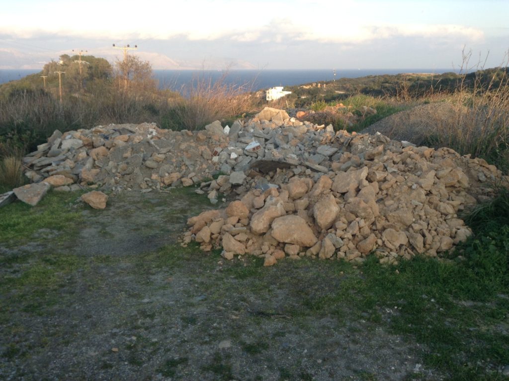 Έχοντας πάρει εδώ και χρόνια σχεδόν ……εργολαβικά την προβολή όσων γεμίζουν τον τόπο μπάζα και σκουπίδια προσβάλλοντας το νησί δεν θα παραλείπαμε και την πλέον πρόσφατη απροκάλυπτα απαίσια ενέργεια ενός ακόμη ασυνείδητου συμπατριώτη μας ή μάλλον ενός από αυτούς που αναλαμβάνουν διάφορες οικοδομικές εργασίες και γεμίζουν τον τόπο με οικοδομικά απορρίμματα.
