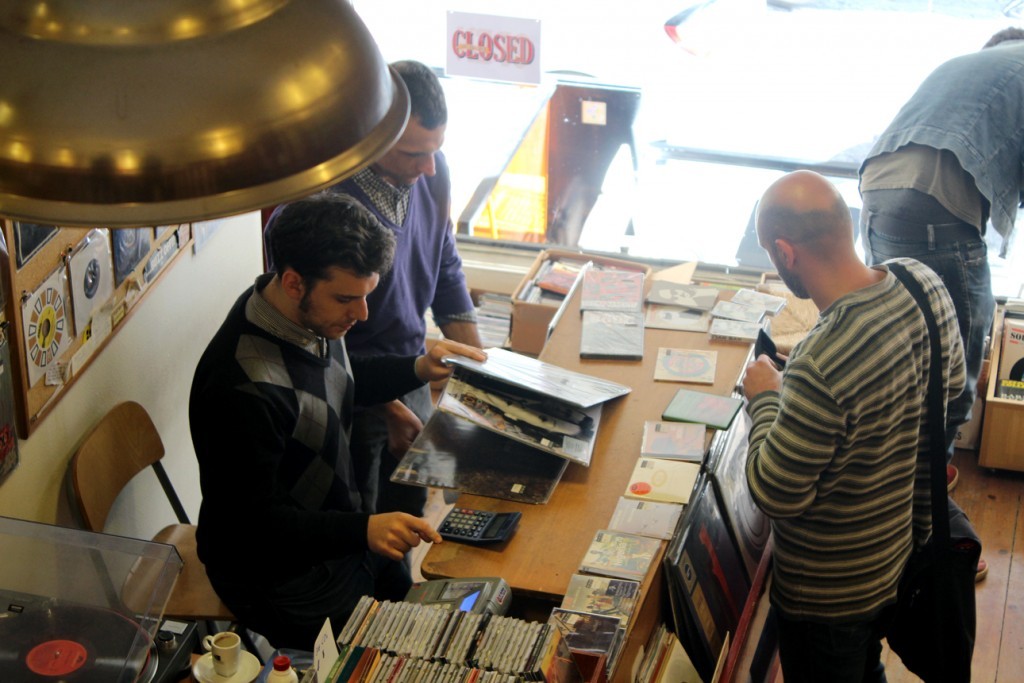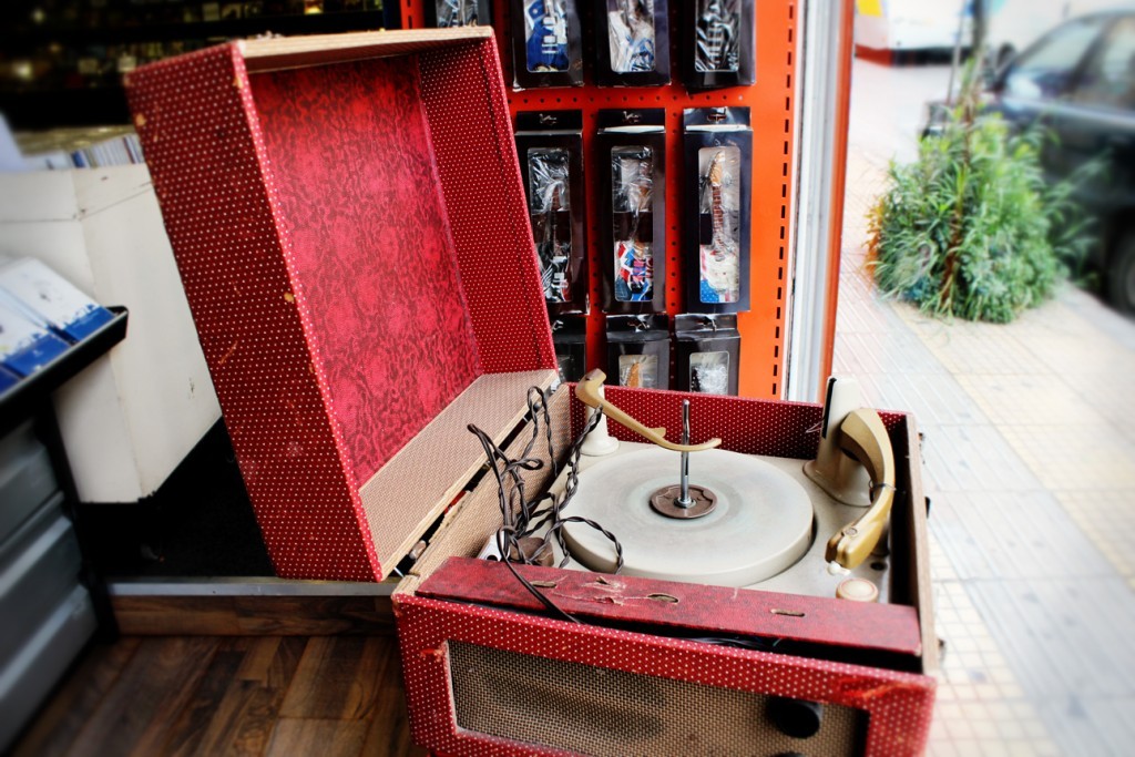 «Η σχέση μου με το βινύλιο είναι ερωτική και ξεκίνησε το 1985 όταν δούλεψα για ένα ολόκληρο καλοκαίρι στο δισκάδικο των γονιών μου» μας λέει ο κύριος Κωτσίδης. Στην άλλη άκρη του μαγαζιού βρίσκεται ένας νεαρός από την Ισπανία. Εχει μαζί του ένα φορητό πικάπ και ακούει παλιά ελληνικά δισκάκια 45 στροφών με παραδοσιακή ελληνική μουσική. Δεν σηκώνει το κεφάλι του από την σκονισμένη στοίβα με τα μεταχειρισμένα δισκάκια ούτε δείχνει να ενοχλείται από την κουβέντα μας.