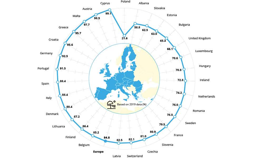 Σχεδόν το 85% των περιοχών κολύμβησης σε όλη την Ευρώπη το 2019 πληρούσαν τα υψηλότερα και πλέον αυστηρά ενωσιακά πρότυπα «εξαιρετικής» ποιότητας για τα ύδατα.