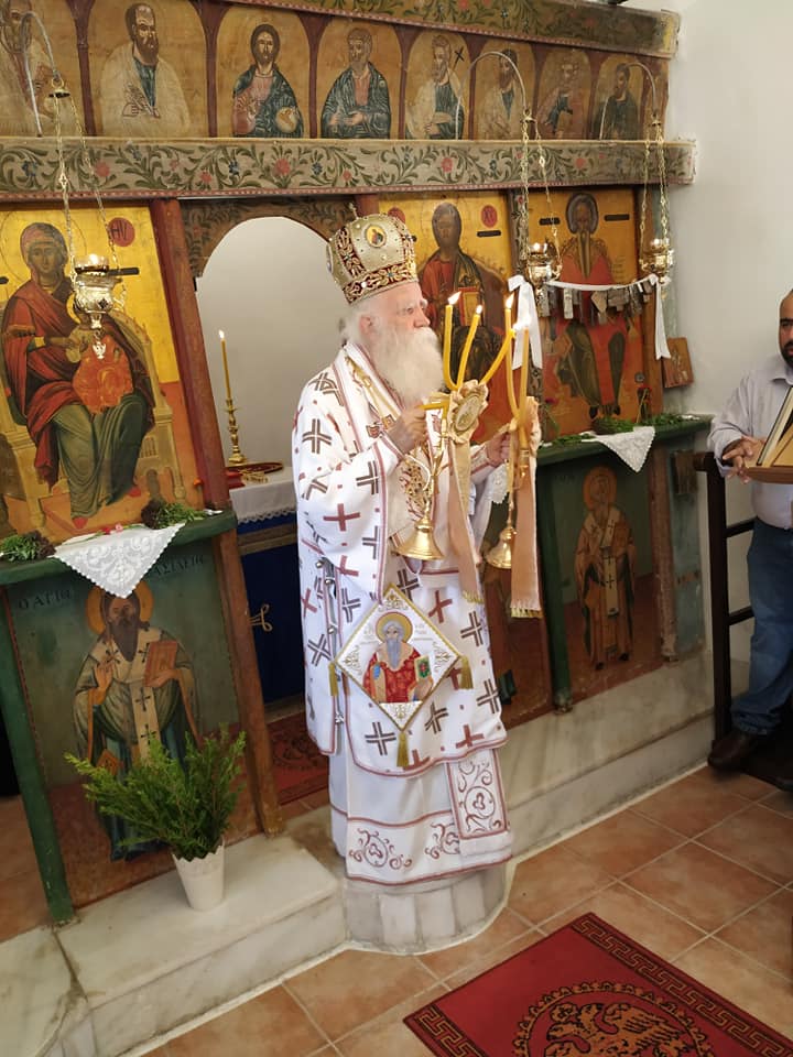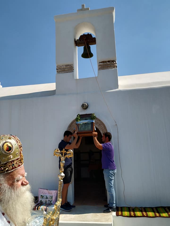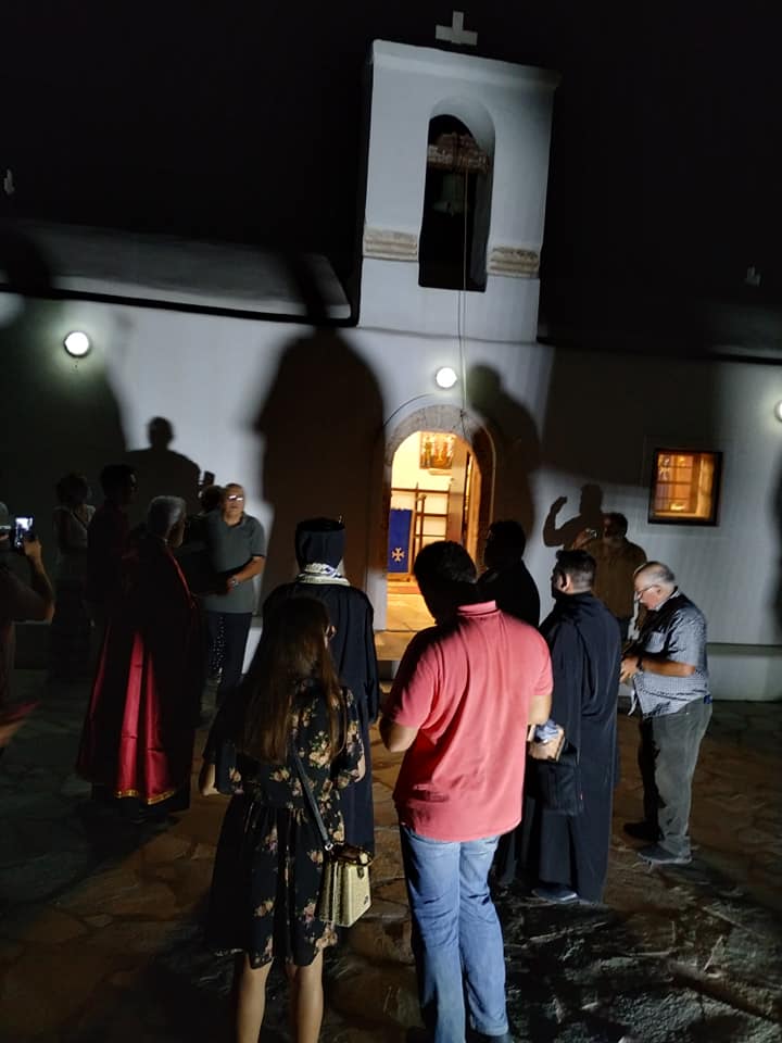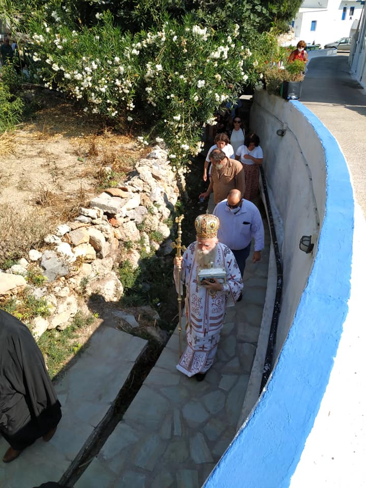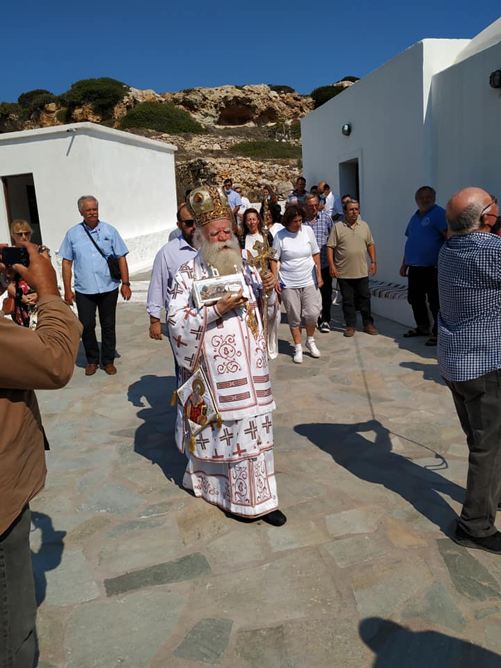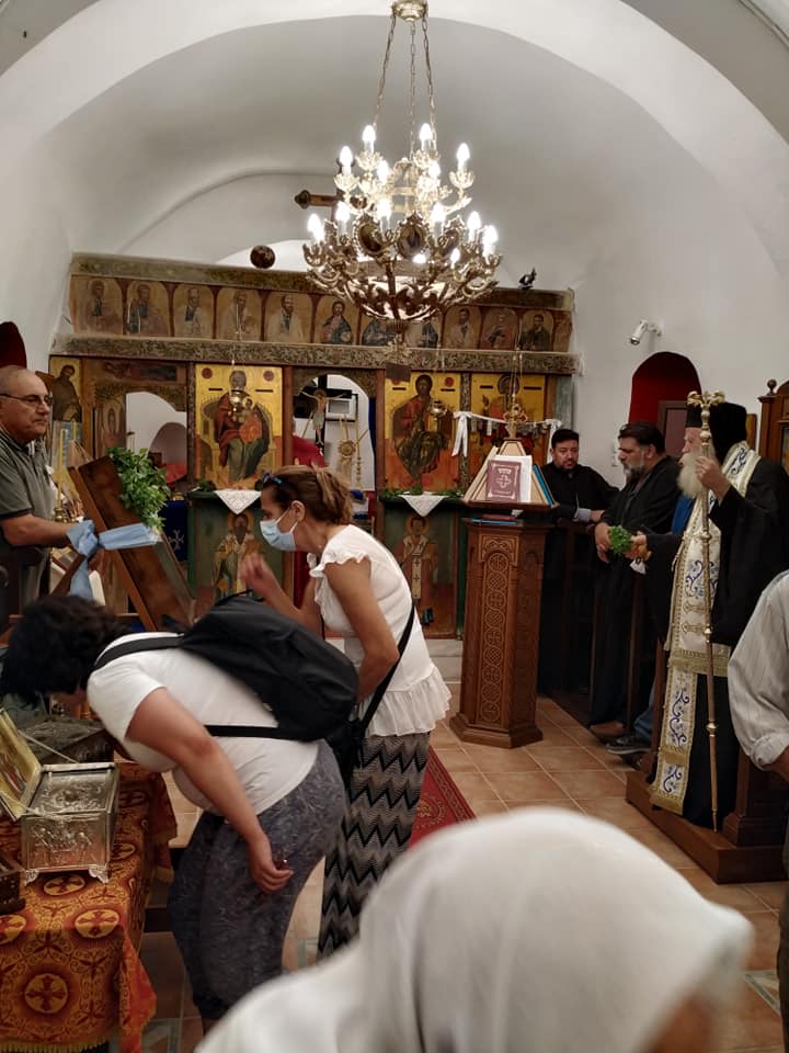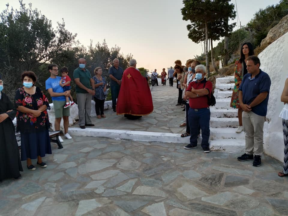 Ο Σεβασμιώτατος, τέλεσε δέηση υπέρ των πυροπλήκτων, σεισμοπλήκτων και πλημμυροπαθών αδελφών μας, ενώ ιδιαιτέρως δεήθηκε για την λύση της πολυετούς ανομβρίας που μαστίζει τα νησιά μας. Ευχήθηκε, τέλος, του χρόνου ο εορτάσμος να πραγματοποιηθεί με λαμπρότητα στο ανακαινισμένο Μοναστήρι του Αγίου.