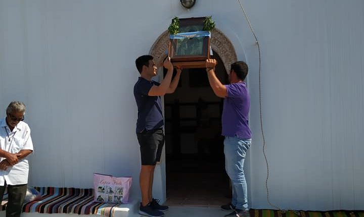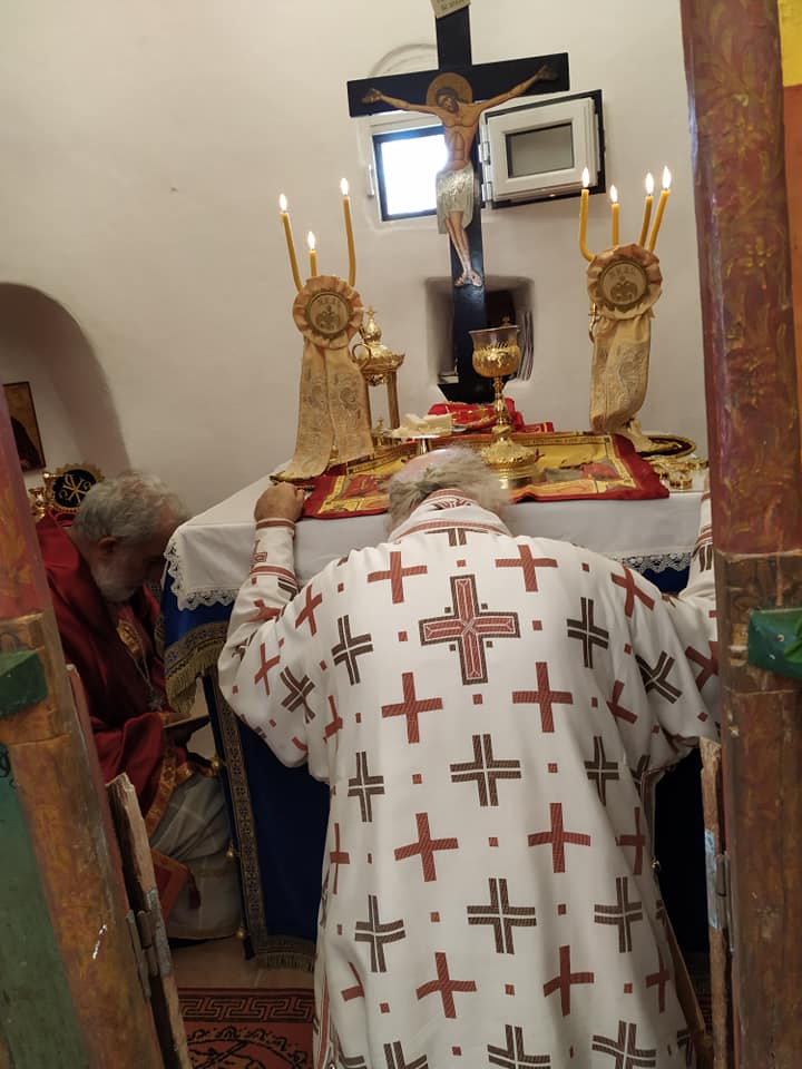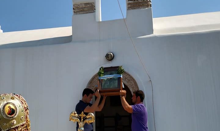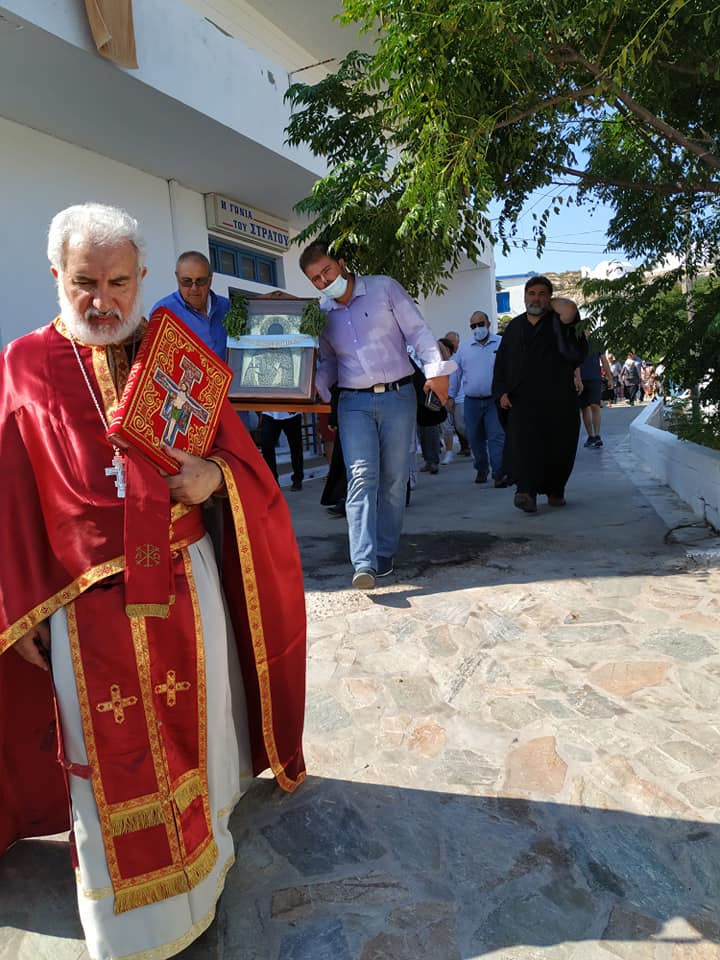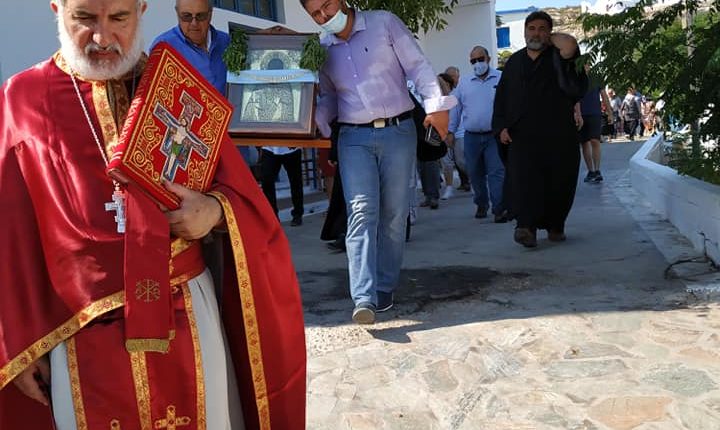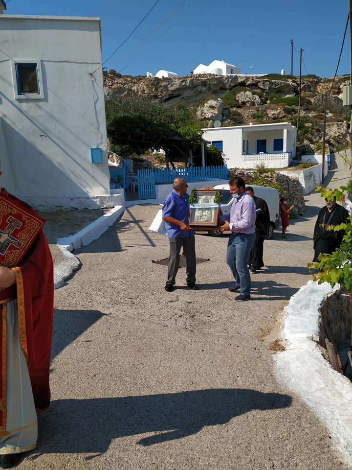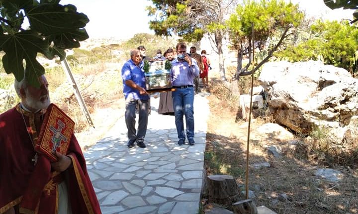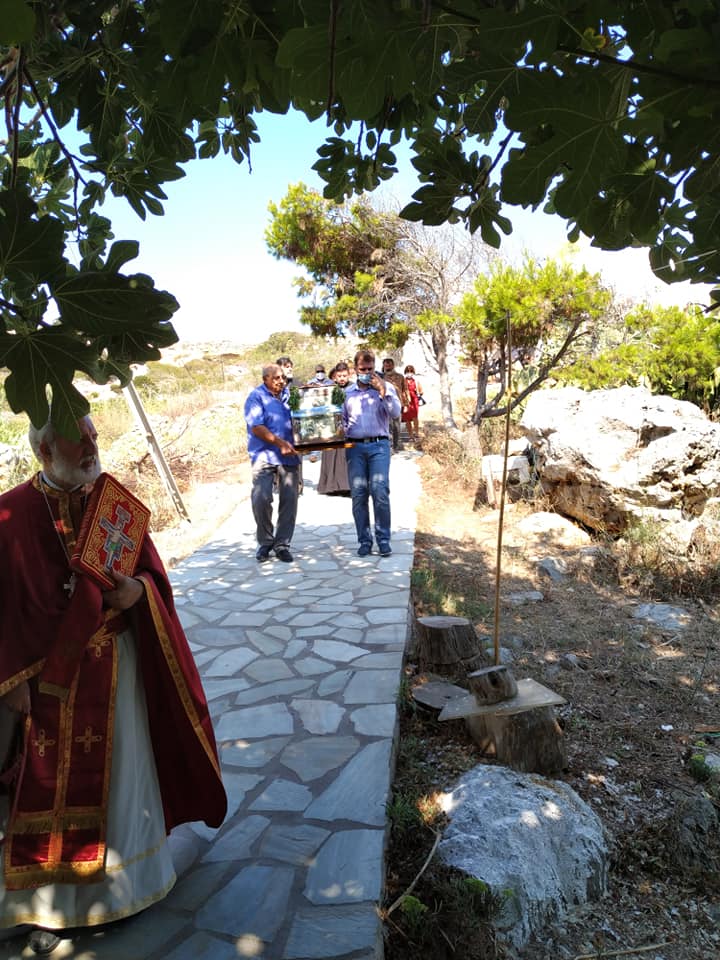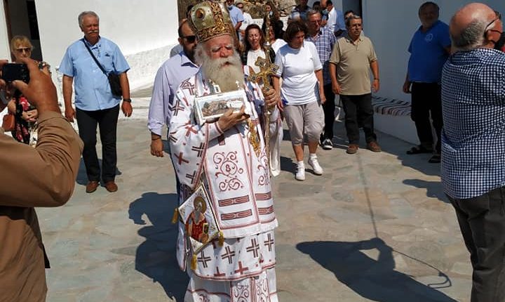Ο Σεβασμιώτατος, τέλεσε δέηση υπέρ των πυροπλήκτων, σεισμοπλήκτων και πλημμυροπαθών αδελφών μας, ενώ ιδιαιτέρως δεήθηκε για την λύση της πολυετούς ανομβρίας που μαστίζει τα νησιά μας. Ευχήθηκε, τέλος, του χρόνου ο εορτάσμος να πραγματοποιηθεί με λαμπρότητα στο ανακαινισμένο Μοναστήρι του Αγίου.