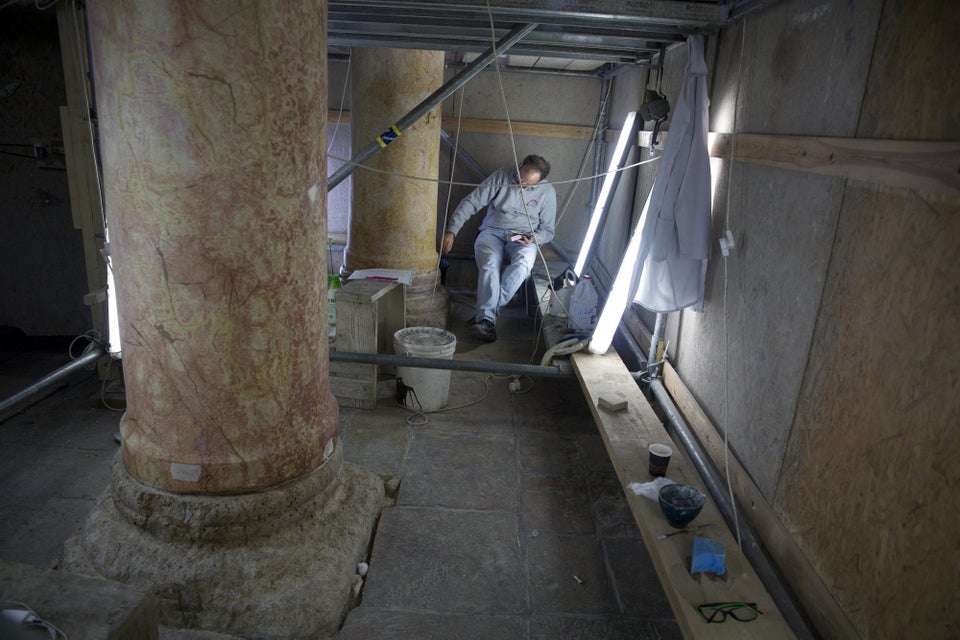 Ο Εμάντ Νασάρ, ένας Παλαιστίνιος μηχανικός που επιβλέπει τις εργασίες, επισημαίνει πως η αποκατάσταση του κτιρίου ξεκίνησε από τον τρούλο. Περίπου το 10% των δοκών αντικαταστάθηκαν με ξύλο που χρησιμοποιούνταν στο παρελθόν σε εκκλησίες στην Ιταλία. Τα παράθυρα έμειναν σταθερά ενώ ανακαινίστηκε το εξωτερικό τους.