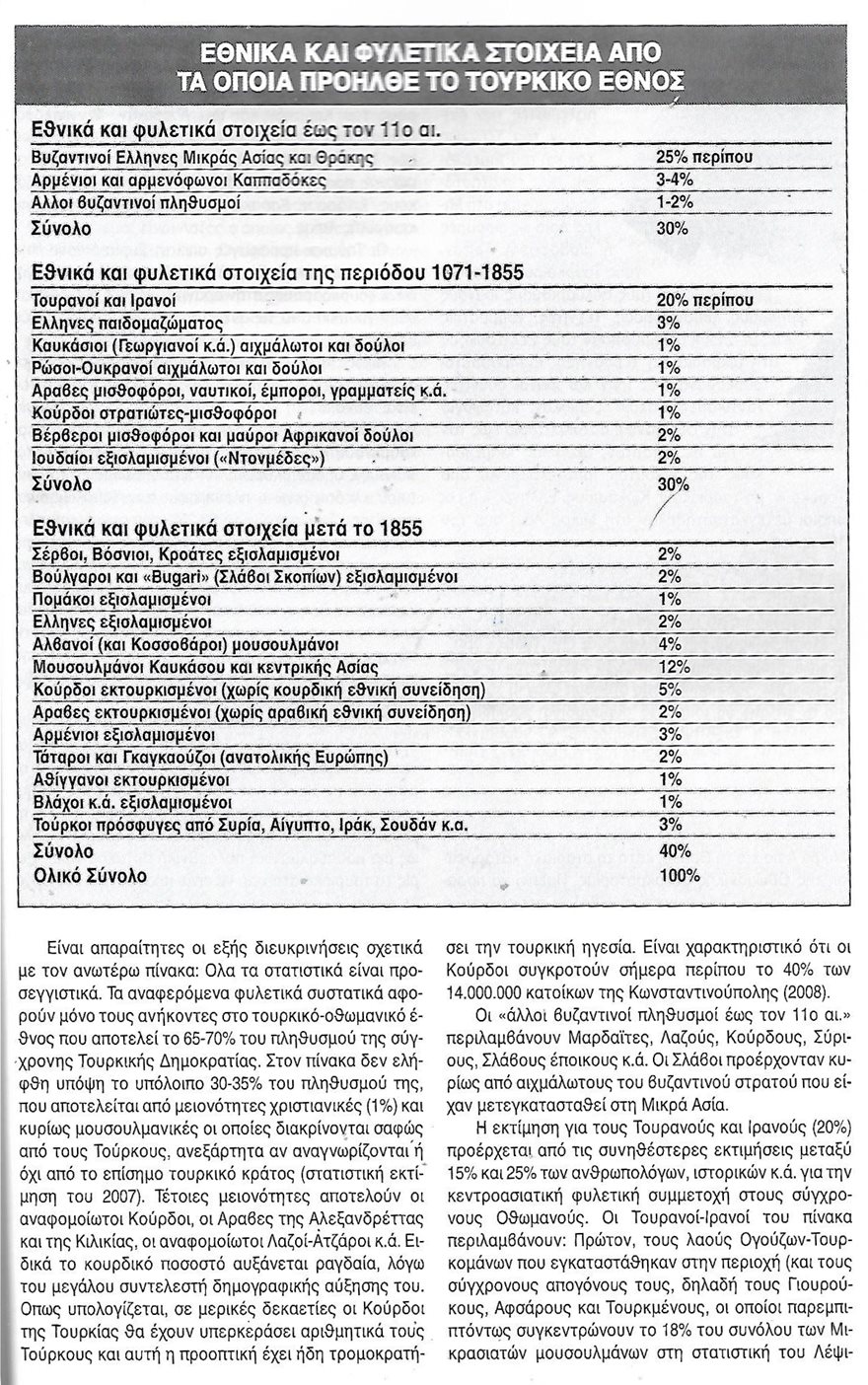 Όσο για την καταγωγή των γειτόνων; Οι πίνακες που παραθέτουμε (ΔΙΑΓΡΑΜΜΑ ΤΟΥΡΚΙΚΩΝ ΦΥΛΩΝ, από το βιβλίο του Α.Κ. Σαββίδη και ΕΘΝΙΚΑ ΚΑΙ ΦΥΛΕΤΙΚΑ ΣΤΟΙΧΕΙΑ ΑΠΟ ΤΑ ΟΠΟΙΑ ΠΡΟΗΛΘΕ ΤΟ ΤΟΥΡΚΙΚΟ ΕΘΝΟΣ, από τη μονογραφία του Περικλή Δεληγιάννη), θεωρούμε ότι είναι άκρως διαφωτιστικοί και αποκαλυπτικοί και απαντούν σε πολλά ερωτήματα…