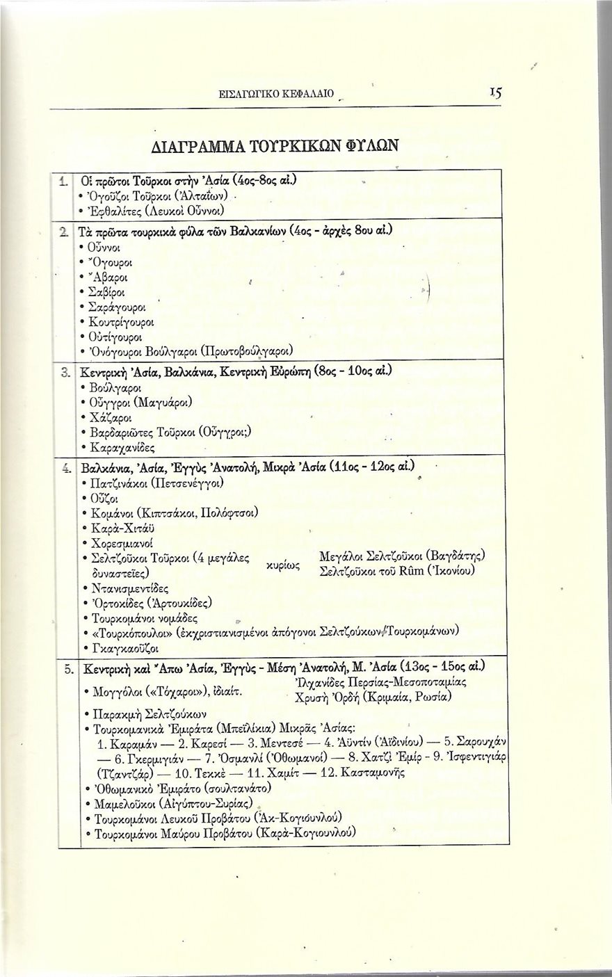 ‘Ολα σχεδόν τα τουρκόφωνα φύλα έχουν την καταγωγή τους στους Ογούζους Τούρκους, οι οποίοι τους πρώτους μεταχριστιανικούς αιώνες ξεκίνησαν από τις πεδιάδες των ποταμών Ορχόν και Σελεγκά, νότια της λίμνης Βαϊκάλης (της βαθύτερης λίμνης της Γης με μέγιστο βάθος 1660 μέτρα) στη σημερινή Μογγολία. Οι πολυαριθμότεροι από αυτούς, οι Ογούζοι Τούρκοι, δημιούργησαν από τον 6ο ως τον 8ο αιώνα ένα εκτενές κράτος. Για τους Ογούζους , όπως και για τις άλλες τουρανικές φυλές της κεντροανατολικής Ασίας, έχουμε ασαφείς και αμφιλεγόμενες πληροφορίες. Ένα άλλο αρχαίο τουρκικό φύλο, ήταν οι Εφθαλίτες(Λευκοί Ούννοι).