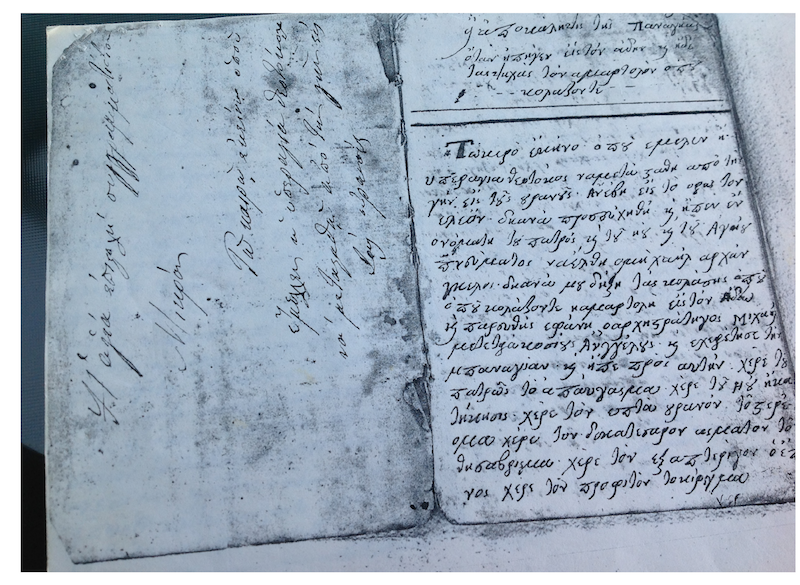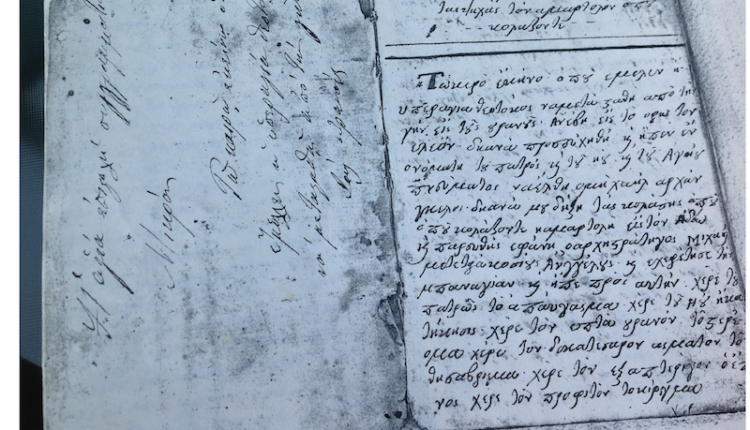 Συνοπτική παρουσίαση χειρογράφου προερχόμενου από το αρχείο του (αείμνηστου) δικηγόρου Σπ. Στρατηγού, συλλέκτη παλαιών χειρογράφων και αντικειμένων.